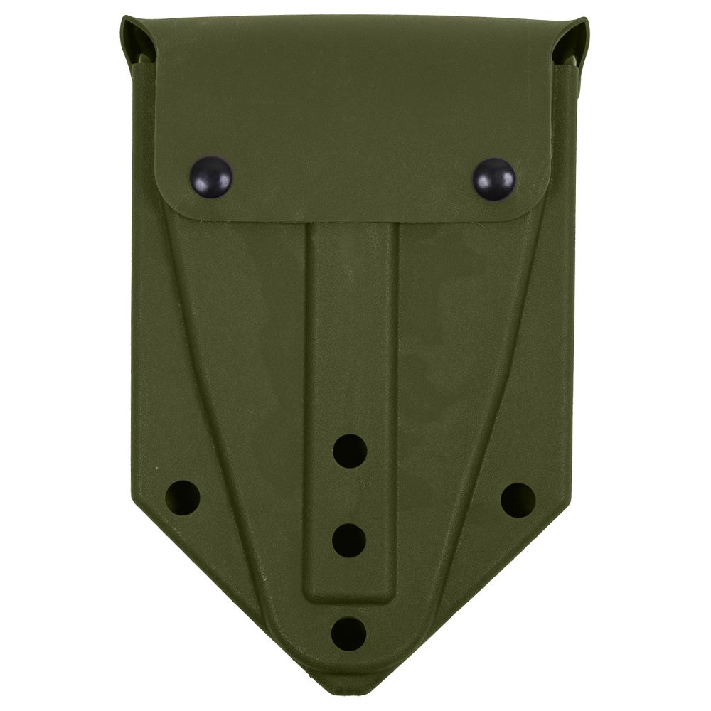 New G.I. Plastic Tri-fold Shovel Cover is the perfect fit for our Tri-Fold Shovel ( It will not fix Rothco's Deluxe Tri-Fold Shovel). The shovel cover features 2 alice keeper clips on the back, two button snap closure on the front and 5 vent holes. This shovel cover is made in the USA.