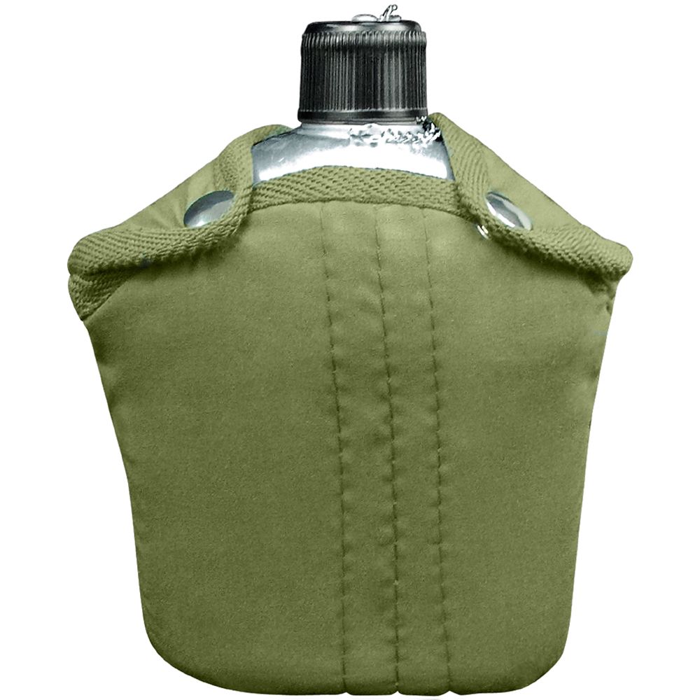 This rugged G.I. style canteen from Ultra Force is perfect for cyclist, workers, hikers, campers and soldiers. The thick metal frame and fleece cover can keep water cold, even after hours of sun exposure. Constructed from heavy gauge aluminum, this canteen is strong, sturdy and durable. The cover clips on with button fasteners and is equipped with a handy belt loop for comfortable carry on long hikes. Holds up to 1 quart (946 ml) of liquid.