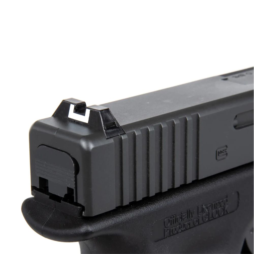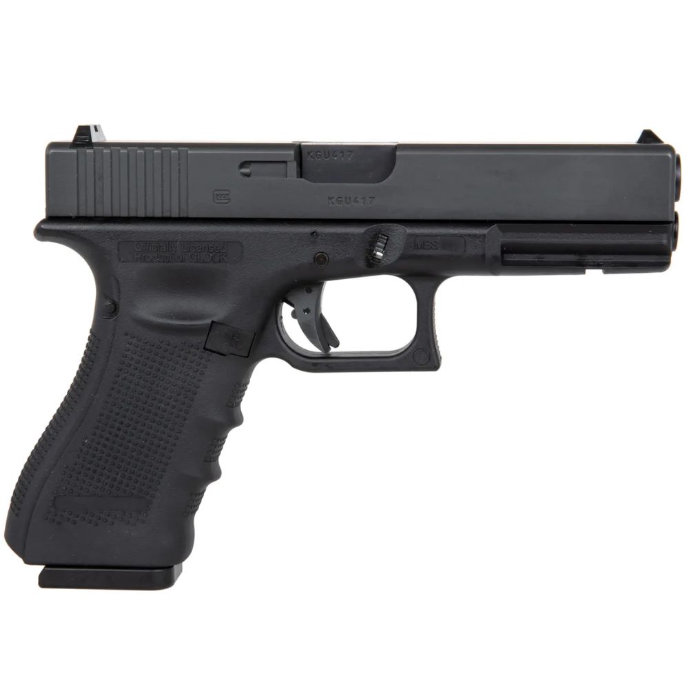 The original Glock 17 pulled duty as a service pistol for the British Army and countless police agencies throughout the world. This GLock 17 Gen 4 CO2 blowback replica features the same enhanced grip texture that its firearm counterpart does. This airgun replica features a drop out CO2 in its mag design that adds to the realistic feel and function. The G17 Gen4 CO2 blowback also features a metal slide, fixed sights, manual safety as well as the iconic Glock ergonomic interface.