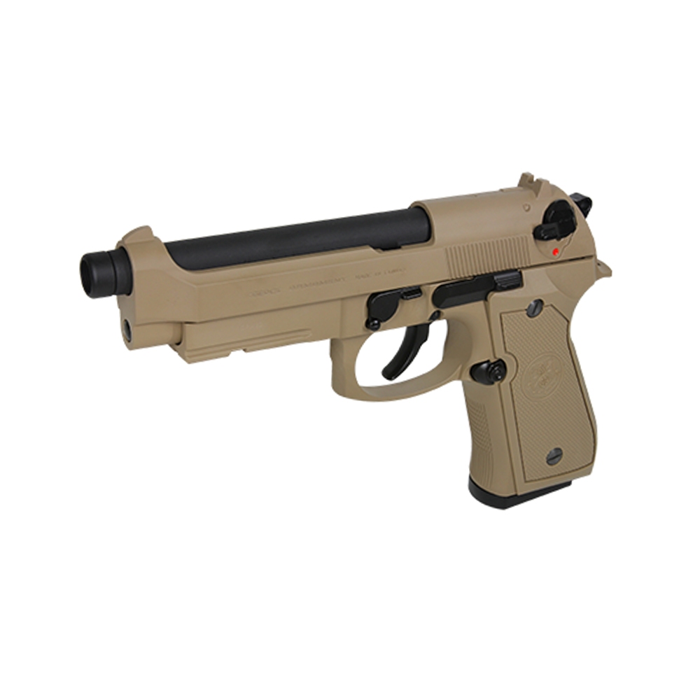 The refurbished GPM92 Black Tip Desert Tan Pistol offers a combination of durability and precision, making it a dependable sidearm for airsoft players. Constructed from metal for a realistic weight and feel, it features a gas-powered blowback system that enhances its authenticity.