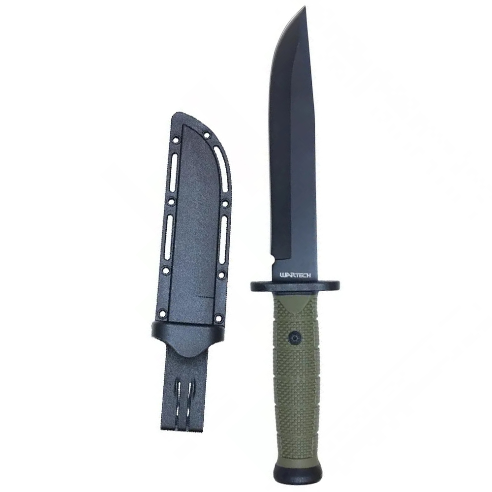 The ergonomic green and black handle ensures a firm grip, providing stability during use. With a hard sheath included, this knife stays protected and ready for action whenever needed.