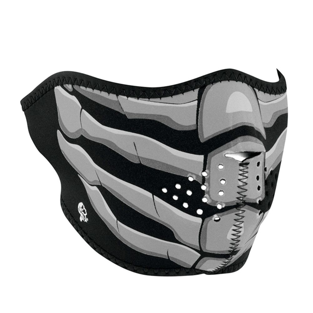 The ZAN Headgear Neoprene Half Face Mask features full coverage of the nose, chin, and cheeks with stretchy, warm and water resistant 2mm thick neoprene. Like most ZAN Headgear face masks it has a stretch nylon trim for added durability and clean finish. A hook and loop closure allows for adjustability and ensures great fit, and can even be lengthened with our Neoprene Extension Piece (sold separately). Provides coverage of the ears, nose and cheeks from the elements. Can be used with or without a helmet. One size fits most. Glow in the Dark Bone Breath design, reversible to Black.