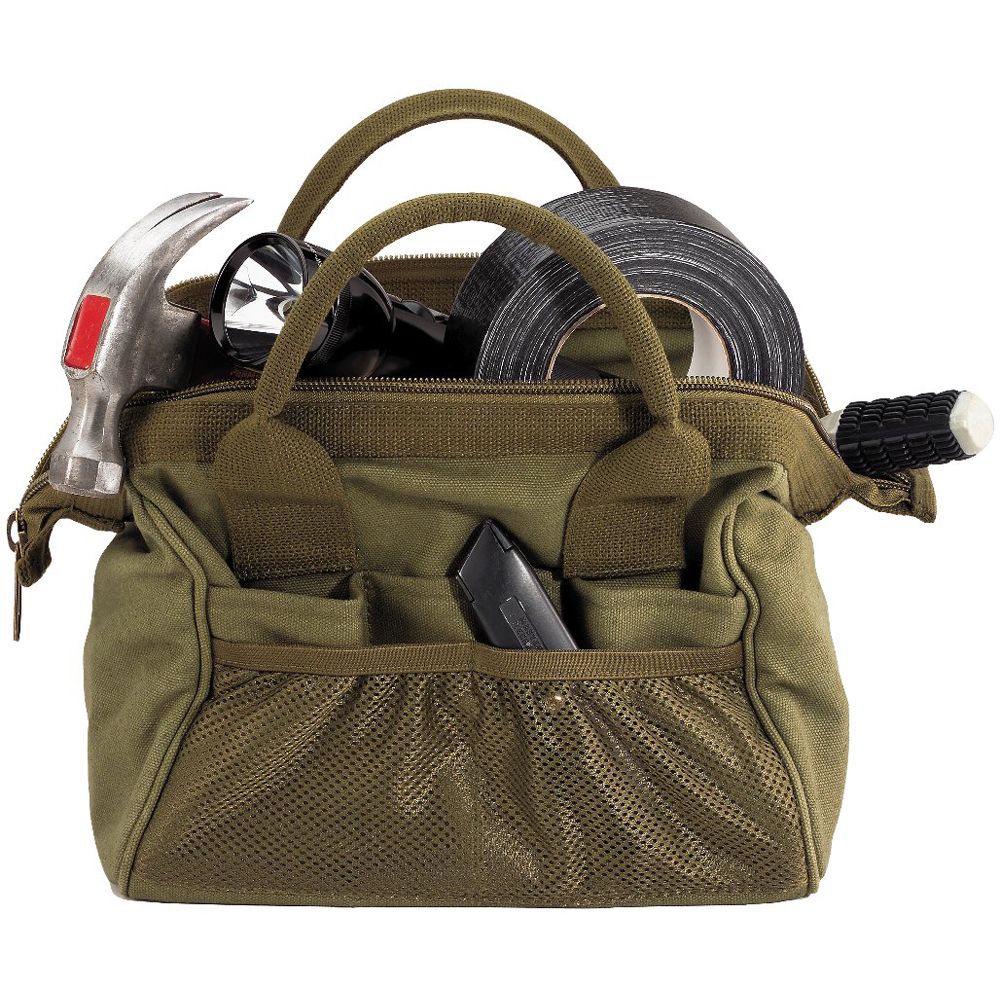 Framed Super Wide Mouth Stays Open For Lots Of Gear , Hard Bottom Carry Handles , Heavy weight Canvas.