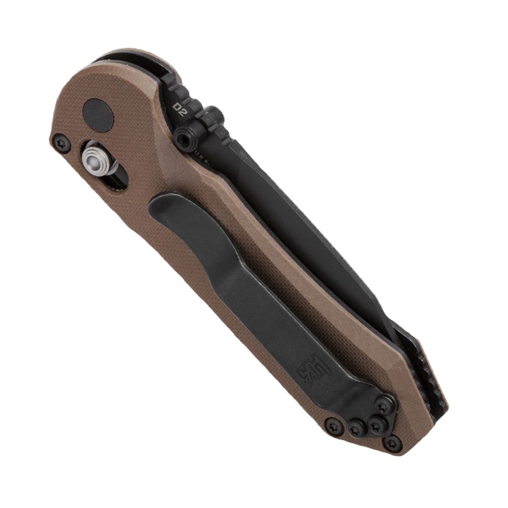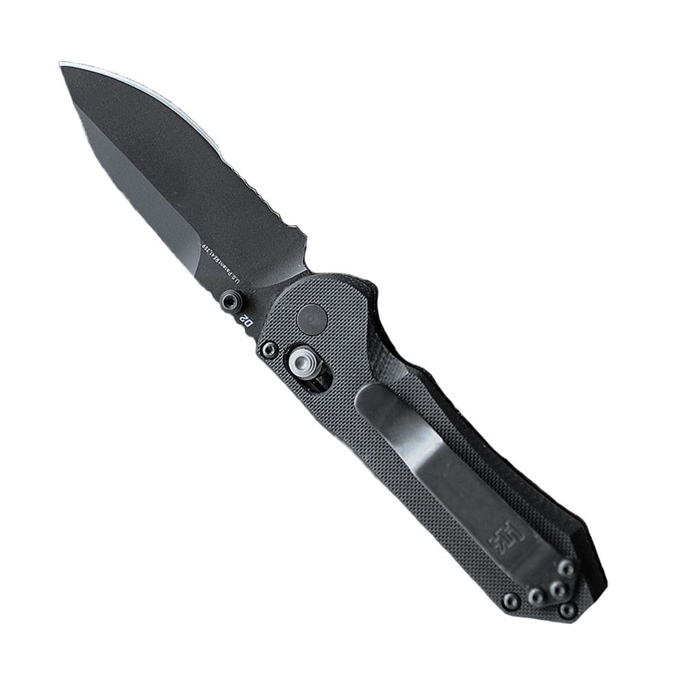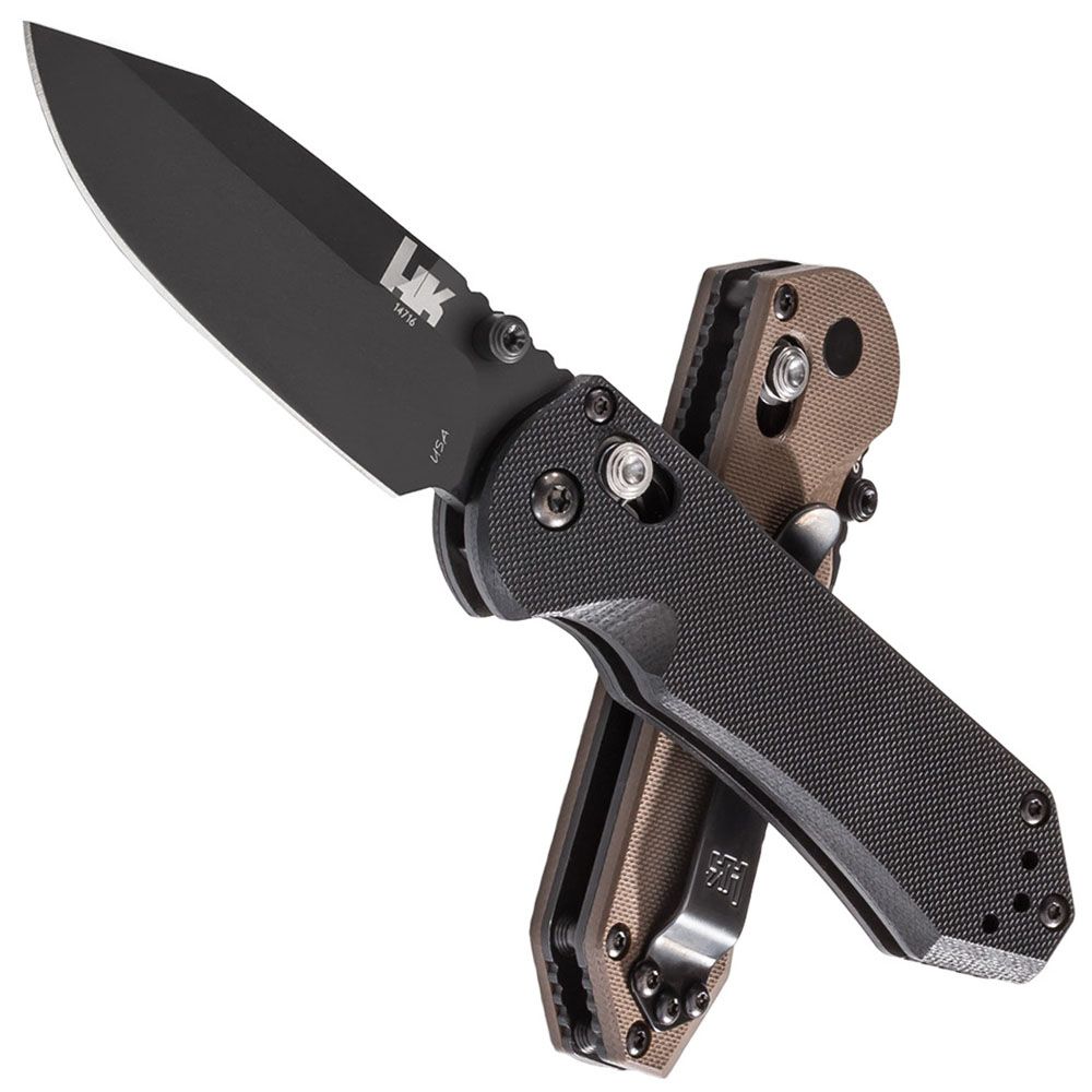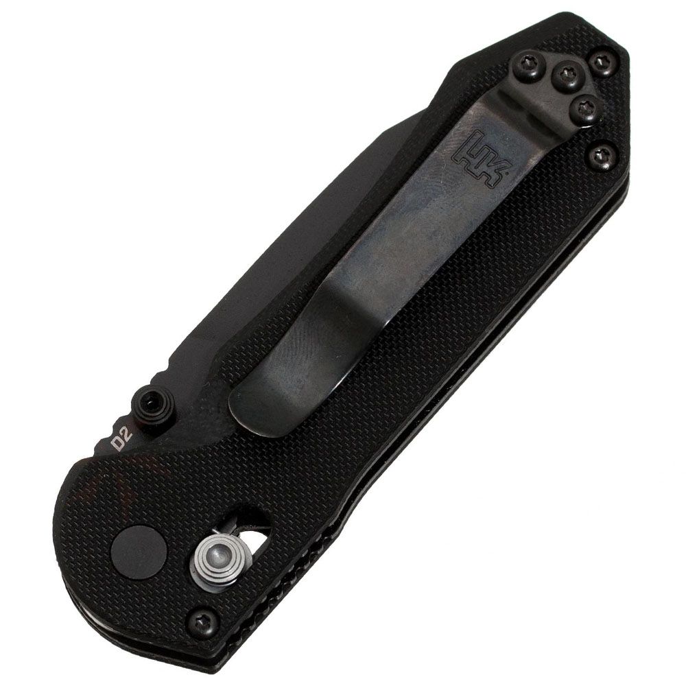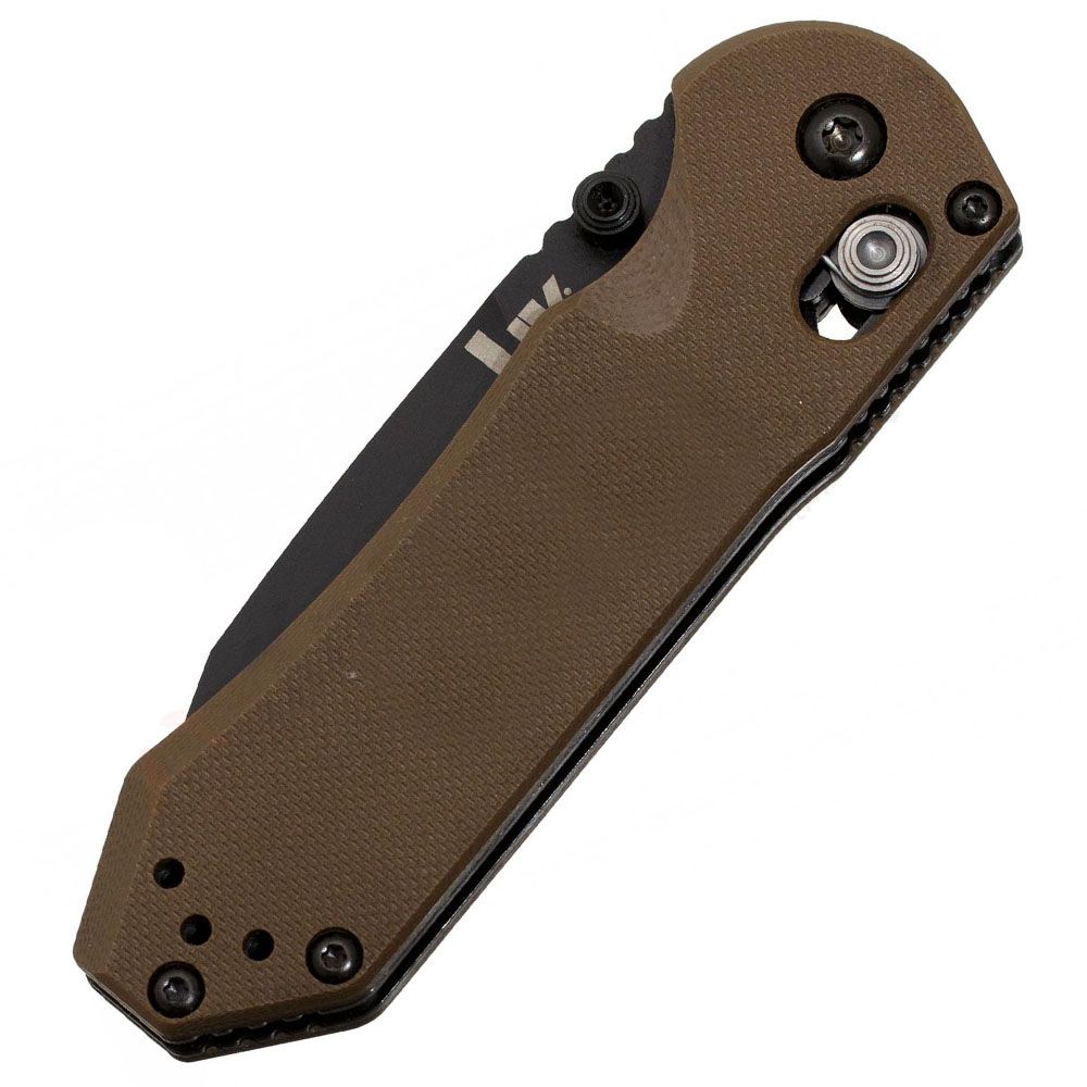 The HK Mini Folding Knife is a quality compact knife that delivers all-around performance in both plain and serrated versions. The D2 steel built blade and the G10 forged handle combine for a powerful knife that maintains a light weight. The AXIS opening mechanism ensures the blade stays securely in place when in use.
