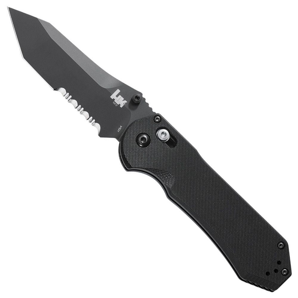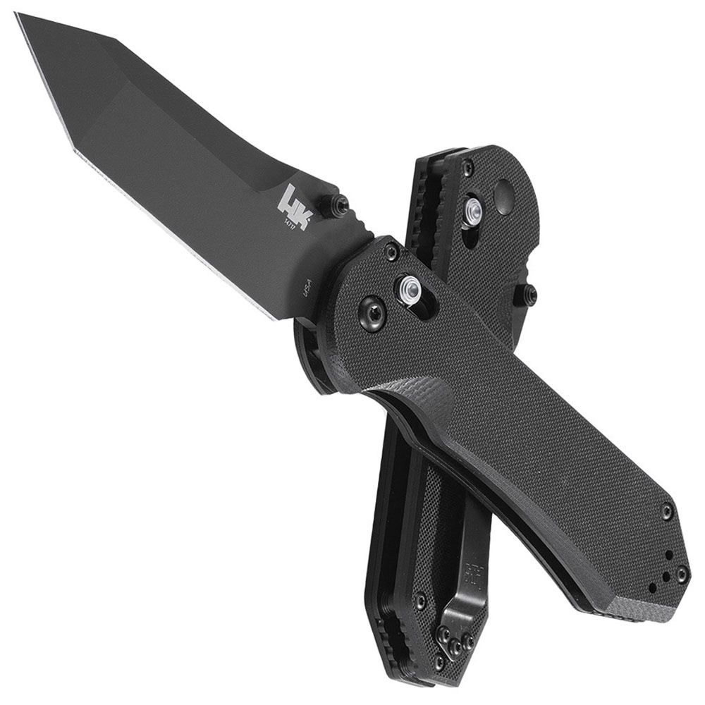 The tanto Heckler & Koch AXIS Folding Knife boasts a strong D2 steel blade that is designed to pierce through tough materials. The ambidextrous design of the handle can be used by both right and left-handed users. Includes an AXIS lock system and reversible pocket clip.