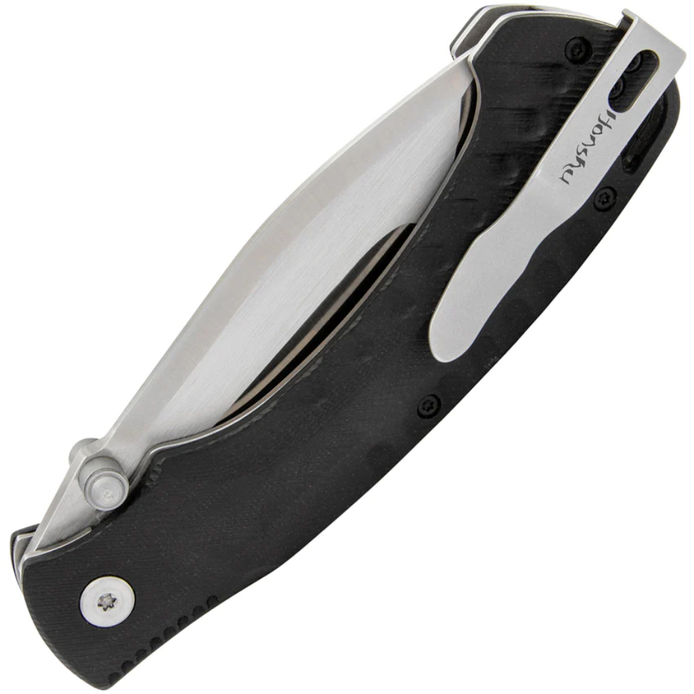 Honshu, known for its incredible line of tactical swords, continues to release innovative pieces that are a savage blend of style and function. The Senjutsu Ball Bearing Opening Pocket Knife is the tactical knife that you’ve been looking for to get the job done on whatever mission you take it. The knife has a 3 1/2”, D2 tool steel blade with a satin finish, and can be deployed using the flipper to activate the ball bearing opening. Our official D2 stamp assures you that you're getting a blade that holds its edge, is perfectly balanced and is as tough as nails. No other company can compete with the superior quality of a Honshu blade. The black G10 handle scales have CNC shaped grooves for a slip-free grip and the liners are bead-blasted stainless steel. The tactical pocket knife is 4 3/4”, when closed, and it has a stainless steel pocket clip and also features a lanyard hole.