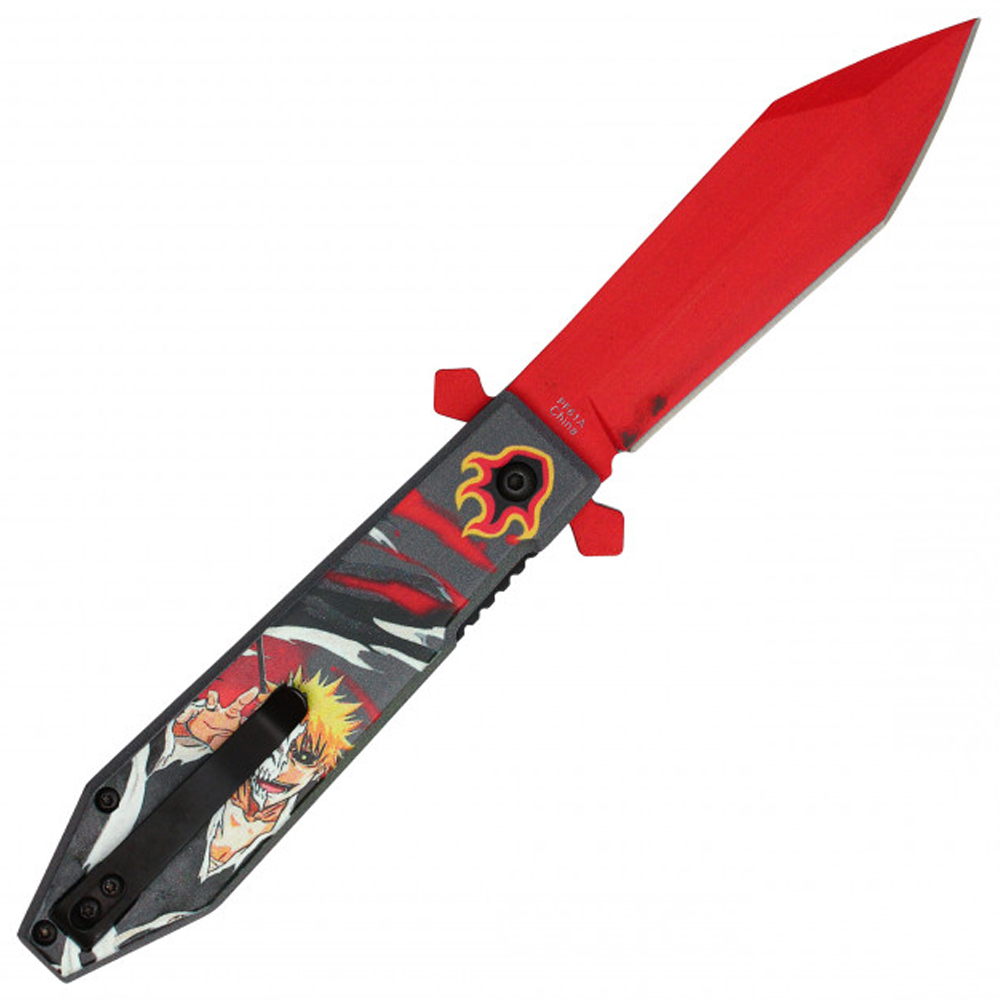 Its 4.5-inch handle, decorated with an Ichigo graphic, offers a firm and comfortable grip. The folding design, paired with a sturdy belt clip, makes it a practical choice for on-the-go use, whether for daily tasks or outdoor activities.