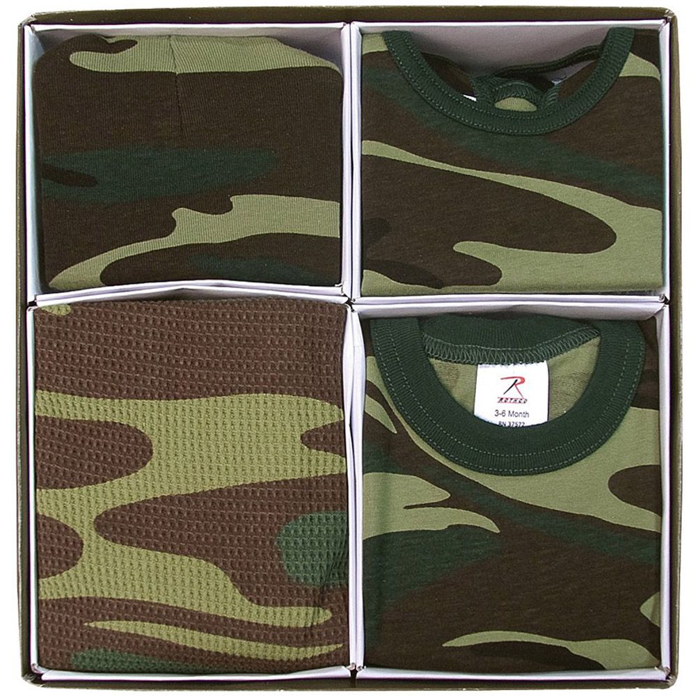 Infant Gift Set is an unusual and cute gift set for a newborn. All items in this gift set are made from 100% cotton and will not cause any rashes or irritation on your little one’s skin. This beautiful gift set contains a body suit in digital camouflage, a crib cap, a bib and a receiving blanket. Your little one will definitely look dazzling after wearing this classic camo suit. This gift set is ideal for an infant who is between three to six months old. This gift set is also packed attractively.
