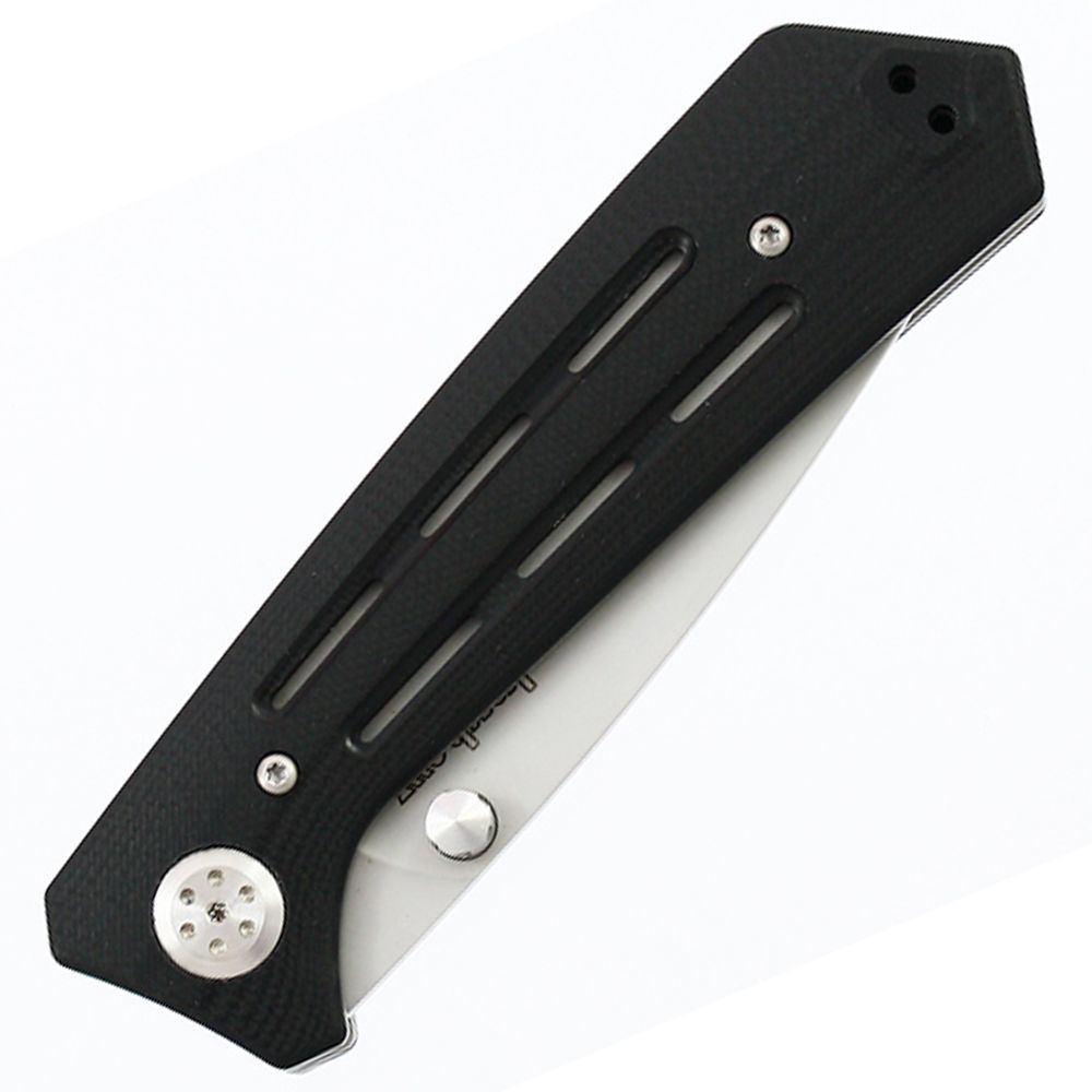 From the tip of its classic drop-point blade to its 3D-machined G10 handle, the manual opening Injection offers streamlined good looks. Details like decorative pivot hardware and machined thumbstuds give the Injection a high-end custom look and feel. The G10 handle features six incised cutouts on each side, letting you see through to the stainless steel liners. The G10 is slightly textured for a secure grip. Even the backspacer is cool; it's chamfered (cut at an angle) on the back end. Another nice detail is the inset lanyard pin so nothing interrupts the smooth line of the knife. And all of this at a price that definitely won't break the bank.
