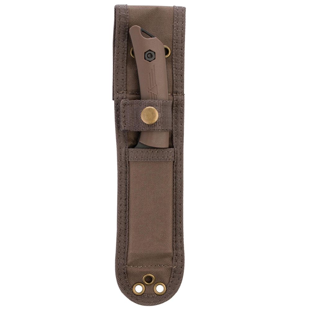 The Globetrotter is the first model to come out of the partnership between KA-BAR and designer Jesse Jarosz. This juggernaut fixed blade knife is burly, nimble, and ready to take a beating. Crafted from American 1095 Cro-Van steel, the full tang blade can handle heavy-duty outdoor tasks and withstand brutal weather conditions. It comes housed in a flexible polyester sheath with an inner polymer mold to secure the blade.