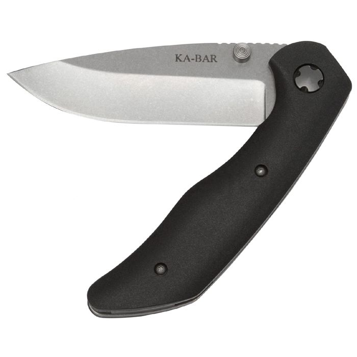The KA-BAR Jarosz Folder is a tanto liner lock pocket knife featuring a hollow ground AUS-8 stainless steel blade and glass-filled nylon handle. It's a simple looking utility knife but once you have it in your hand you will appreciate the look and performance of the large blade and slender handle. Designed with a moveable clip for tip-up or tip-down right-hand carry, this modest size folder is perfect for pocket or pack. All this at a fraction of the cost of Jesse's custom folder that this is modeled after.