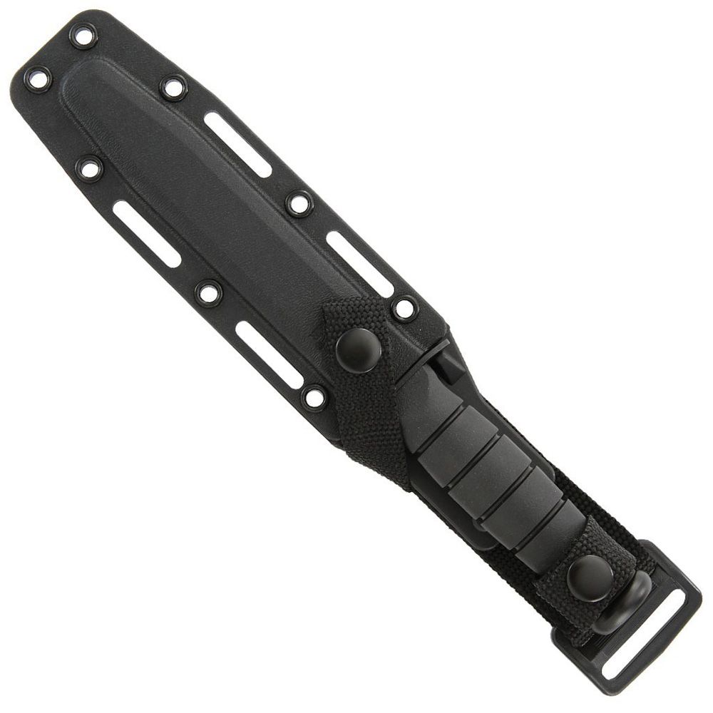 The Tanto blade shape, of Asian influence, has a thick pointed blade that's rugged enough for the most difficult tasks. A partially serrated edge makes cutting looped and synthetic materials a breeze. Tang stamped USA. Hard plastic MOLLE compatible sheath included.