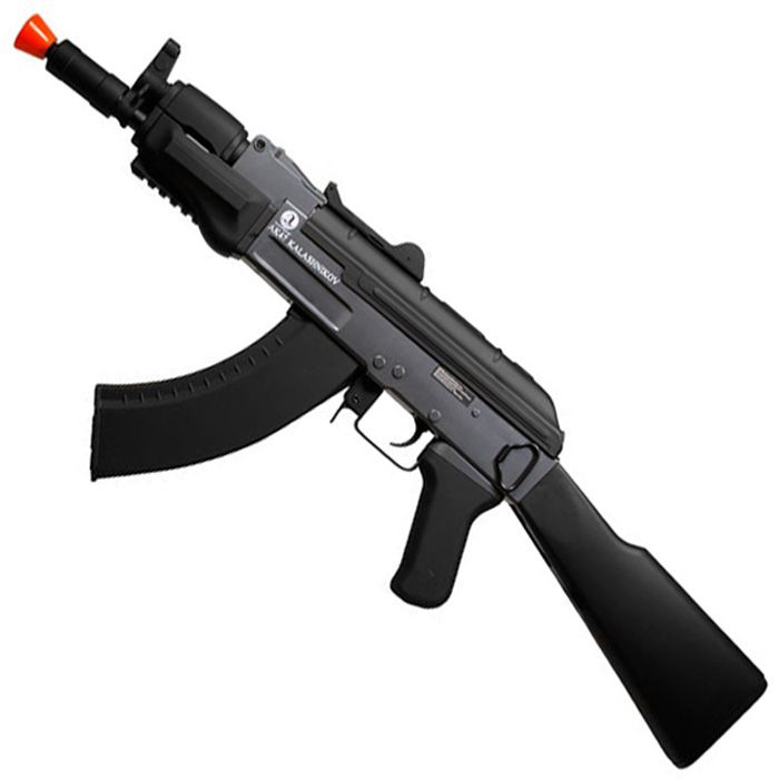 The Kalashnikov AK47 Spetsnaz is a powerful and accurate assault rifle with a compact barrel designed for maneuverability. The magazine holds 550 rounds with a fully automatic FPS of 374. The black coloured polymer and metal parts showcase the authenticity of this replica gun.