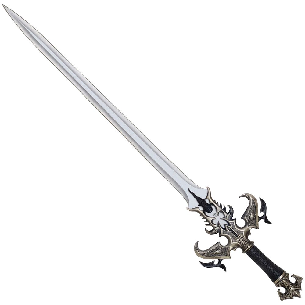 This high quality fantasy sword features an intricately detailed solid metal and simulated black ivory handgrip with a tempered, 420 stainless steel blade. Each purchase includes a free full-color art print, "Vaelen and Naegolus" illustrated by sword designer Kit Rae himself. Each piece is branded with the designer Kit Rae's trademark.