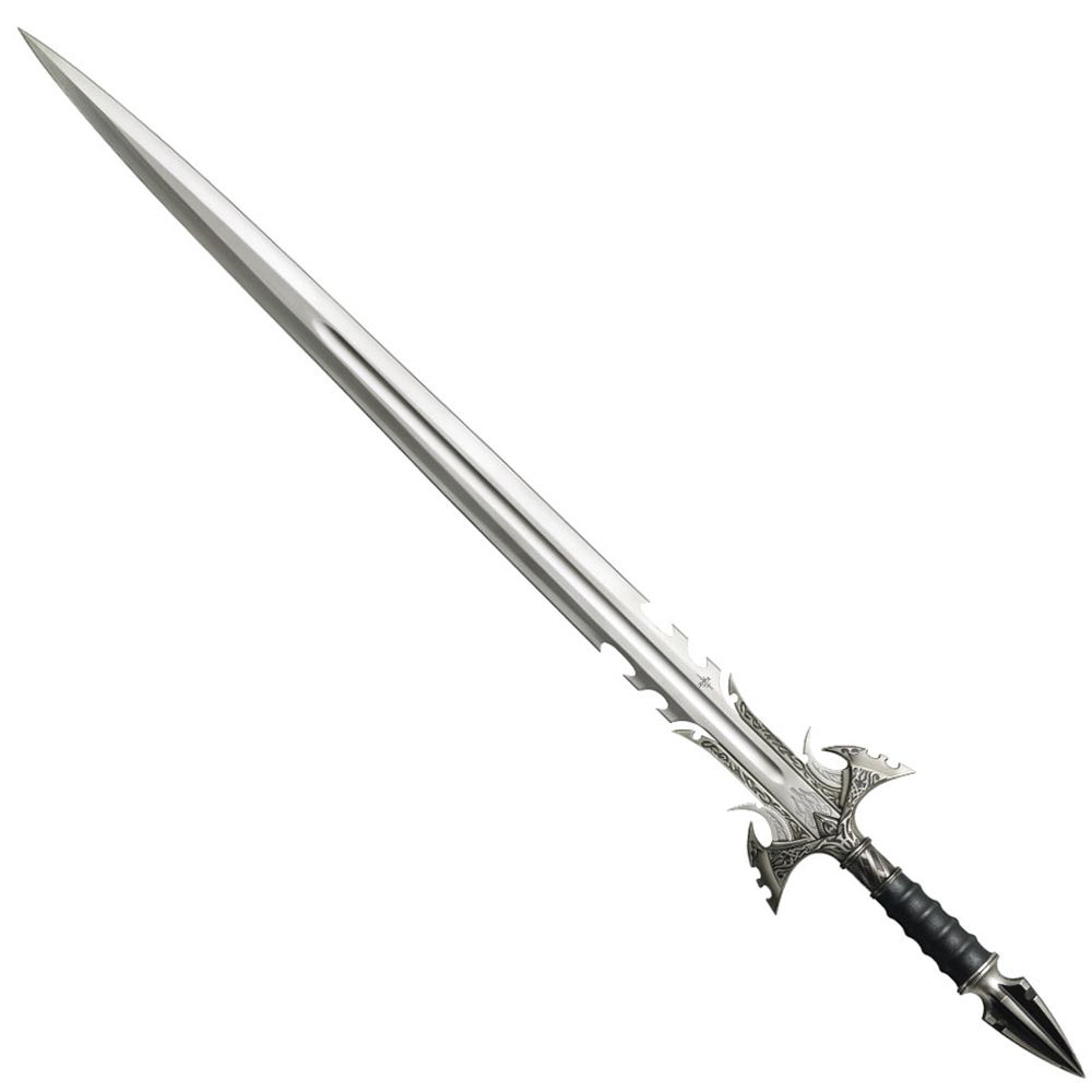 The latest in the Swords of the Ancients collection! Sedethul was one of the three swords of Avonthia. The Avonthians were three brothers, sons of a king in ancient times, who were charged with imprisoning the deathless spirit of the Dark One in the depths of the earth (from the Swords of the Ancients mythology). The hilt is wrought with an ornately decorated solid metal hand guard, a genuine leather wrapped grip, and a ridged, armor piercing pommel. The AUS-6 stainless steel (false-edged) blade features a deep fuller groove and laser engraved Kit Rae emblem.