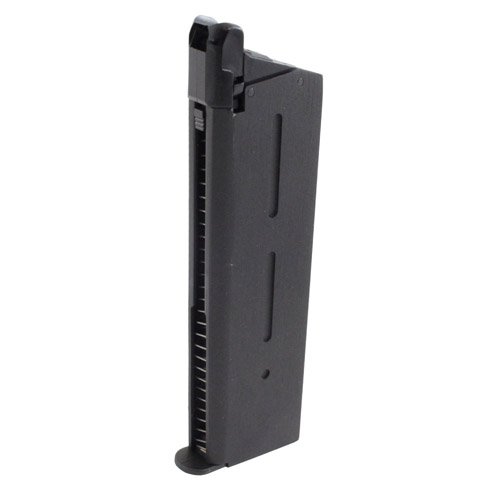 This green gas magazine is compatible with the KJ Works M1911 and KP-07 airsoft pistol. Features a solid metal construction and 24rd capacity.