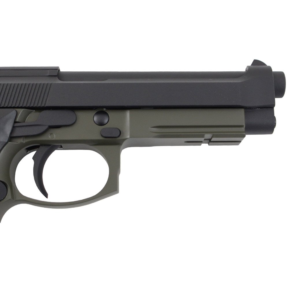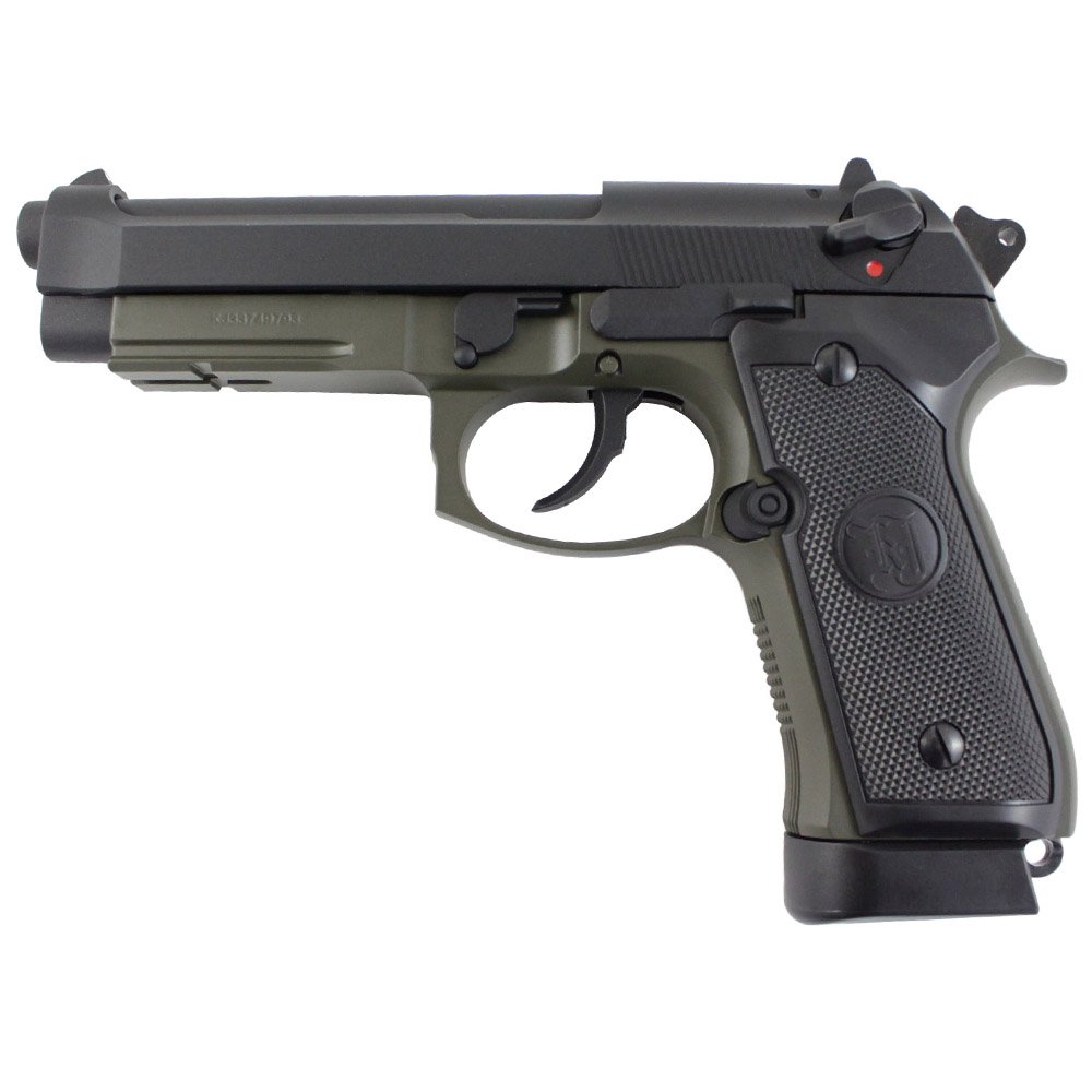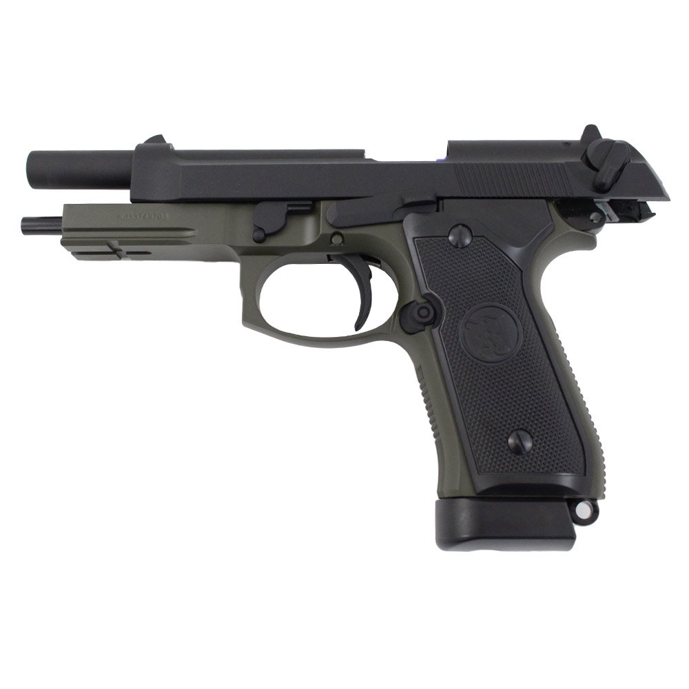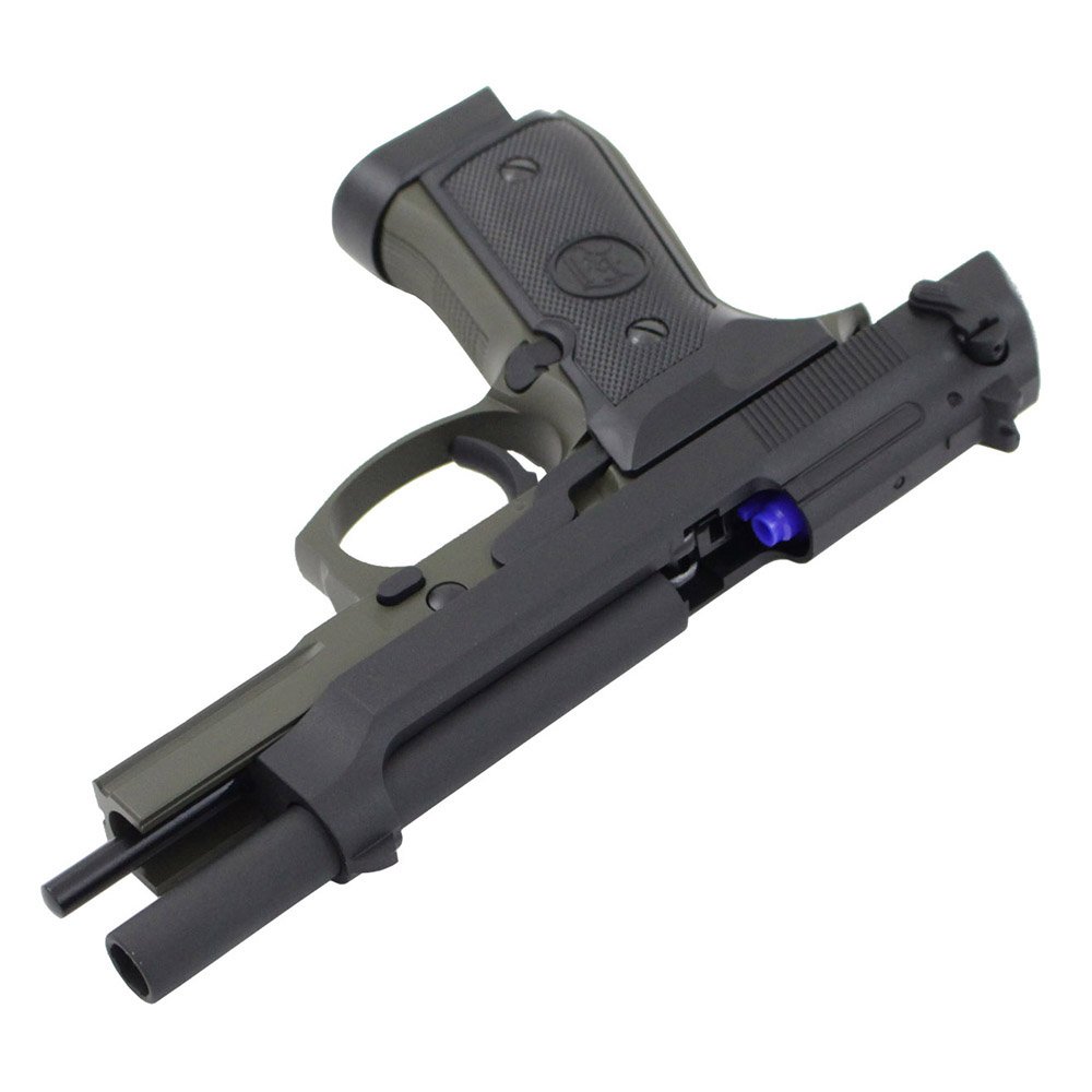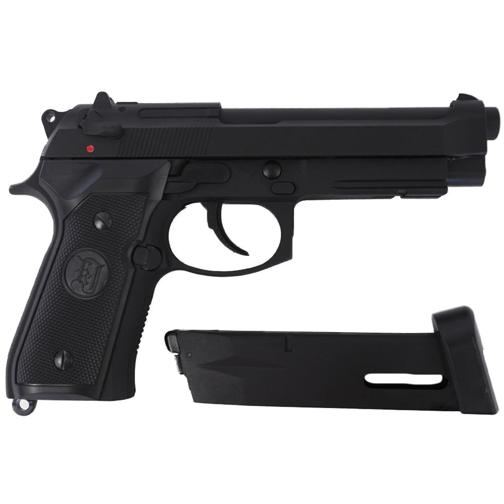 Based off of the legendary Beretta M9, the KJ Works M9A1 CO2 Airsoft Pistol FM Blowback mimics the greatness of its real steel counterpart. The full metal airgun features a solid fit and finish and comes with heavy blowback action, adjustable hop-up, and a muzzle velocity exceeding 370 FPS. The trigger pulls smoothly in both single and double action, just like the original M9A1. Pistol weighs 900g (2 pounds) and holds 25 rounds of 6mm airsoft BBs.