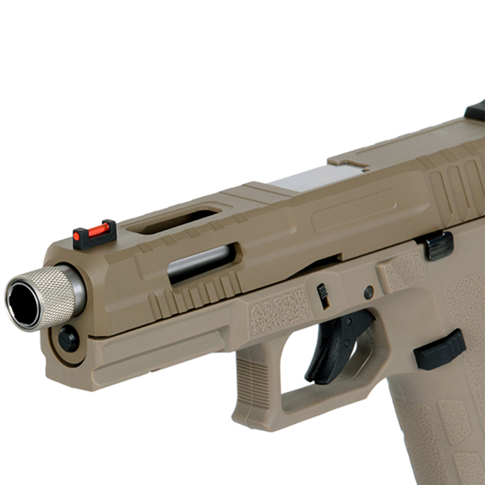 The KJ Works KP-13 is none other than a 1911 Blowback pistol with a 14mm CCW Threaded Outer Barrel and Protective Cap. This version has been designed with an ergonomic polymer frame and cutouts in the aluminum slide for better ventilation and weight distribution.