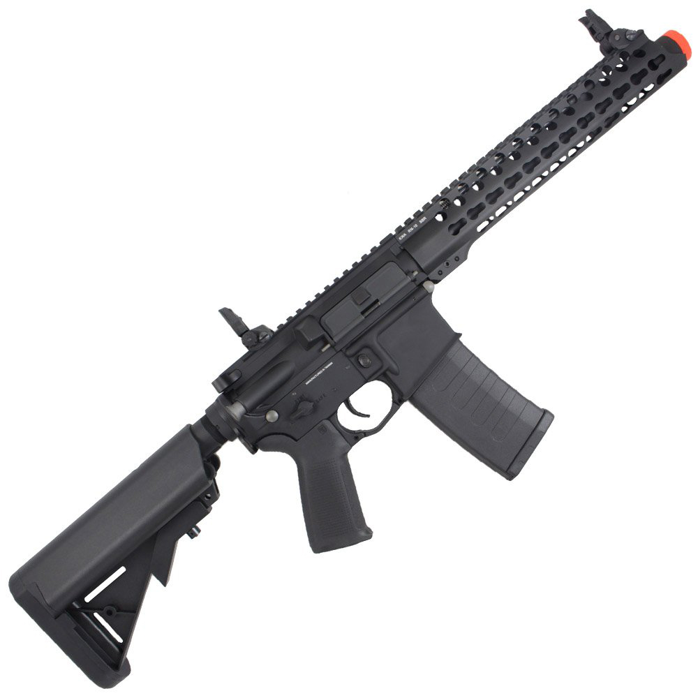 The KWA VM4 X-10 is a Short-Barreled Rifle (SBR) from KWA's new series. This mid-range M4 features a 10-inch barrel with a KeyMod handguard and custom mock suppressor. The full metal upper and lower reciever and complimented by a PTS Enhanced Polymer stock, grip and flip-up sights. Like all of KWA's AEG 2.5 rifles, the X-10 is internally powered by an upgraded gearbox, equipped with a quick-change spring system and Switch Life Extender.