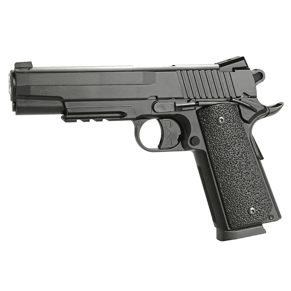 The KWC 1911 GSR .177 CO2 Steel BB Pistol is a powerful and realistic airgun based on the iconic 1911 design. This CO2-powered pistol is built with a full metal body, giving it the weight and feel of a real firearm. It shoots .177 caliber steel BBs with impressive velocity, making it ideal for target shooting and plinking. The textured grips ensure a secure hold, and the blowback action adds a layer of realism with each shot.