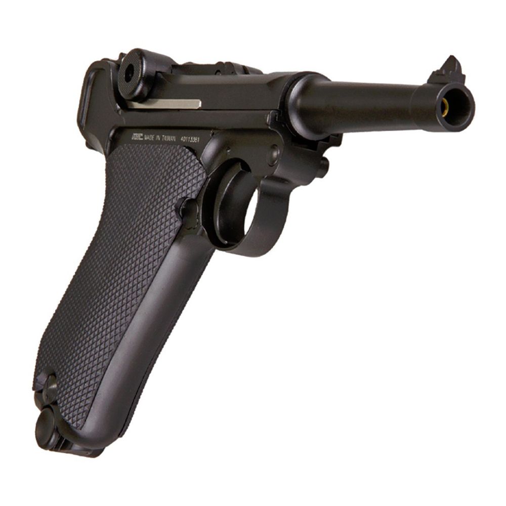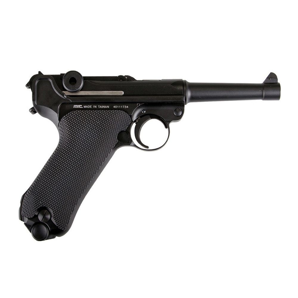 The KWC Luger P08 BB Pistol is a real blast from the past! Originally known as the “Pistole Parabellum”, the Luger was the official sidearm of German infantry used throughout WWI and WWII. This 4.5mm BB replica is nearly identical to the real steel pistol, featuring a fully-functional jointed arm toggle in place of a slide. It has a light single action trigger system with powerful blowback for an authentic firing experience.