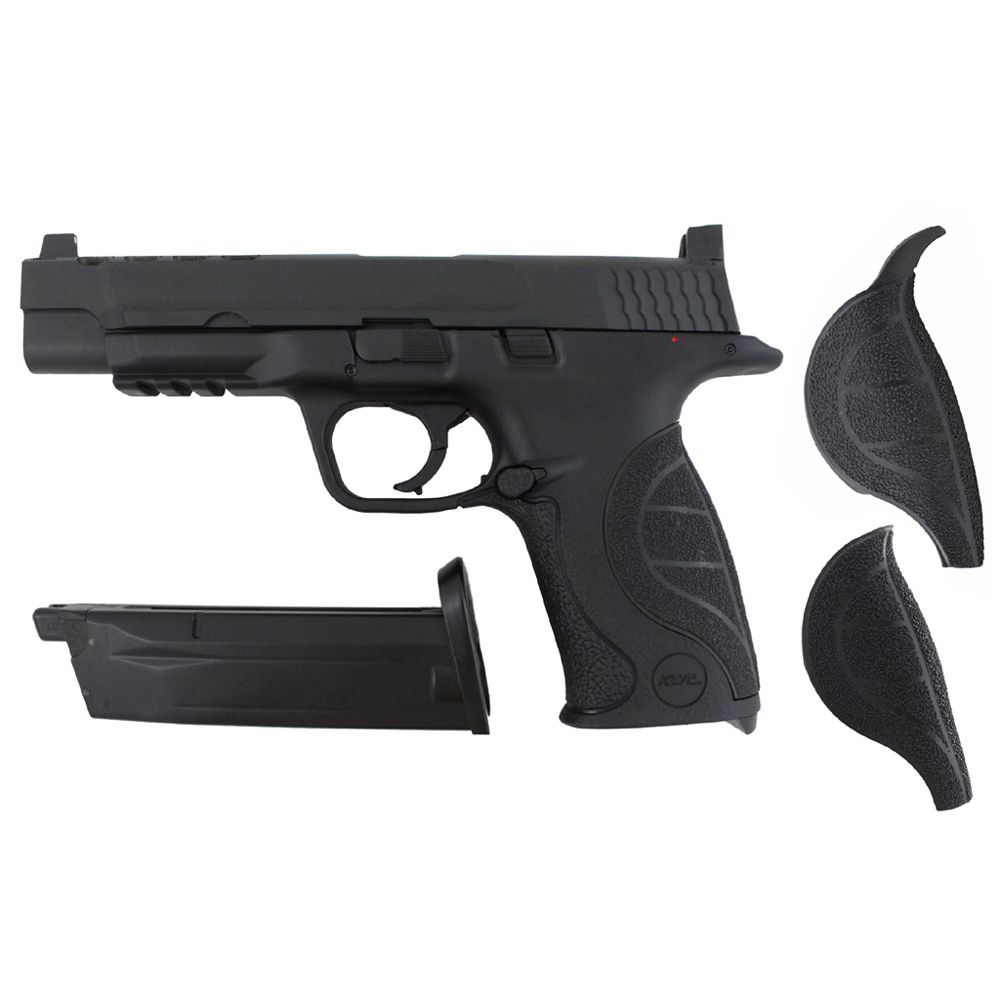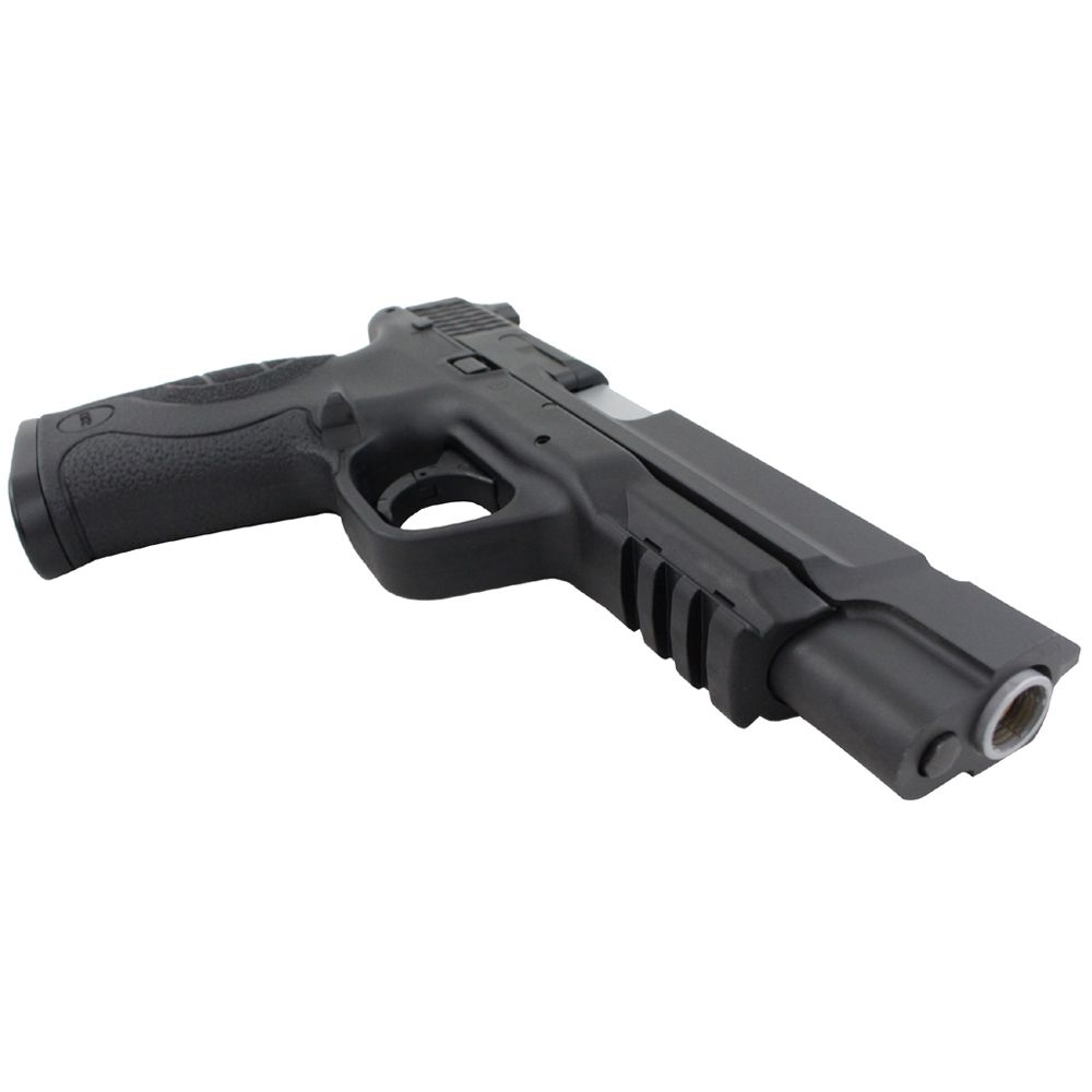 KWC has upgraded their MP40 airsoft model with an extended ported barrel for increased firepower and accuracy. The lightweight polymer frame includes a tactical accessory rail and an enhanced textured grip with three interchangeable palm swell segments. This iconic pistol's other notable features include trigger safety, adjustable white dot sights, and a 15rd metal drop-free magazine.