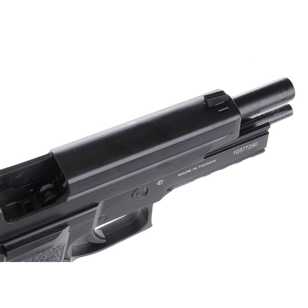 The KWC P226-S5 is a full blowback CO2-powered airsoft pistol. This agile sidearm has a full metal frame with a comfortable polymer grip and a full-size drop-out metal mag. The tactical accessory rail allows you to further upgrade your aim with a flashlight or laser.
