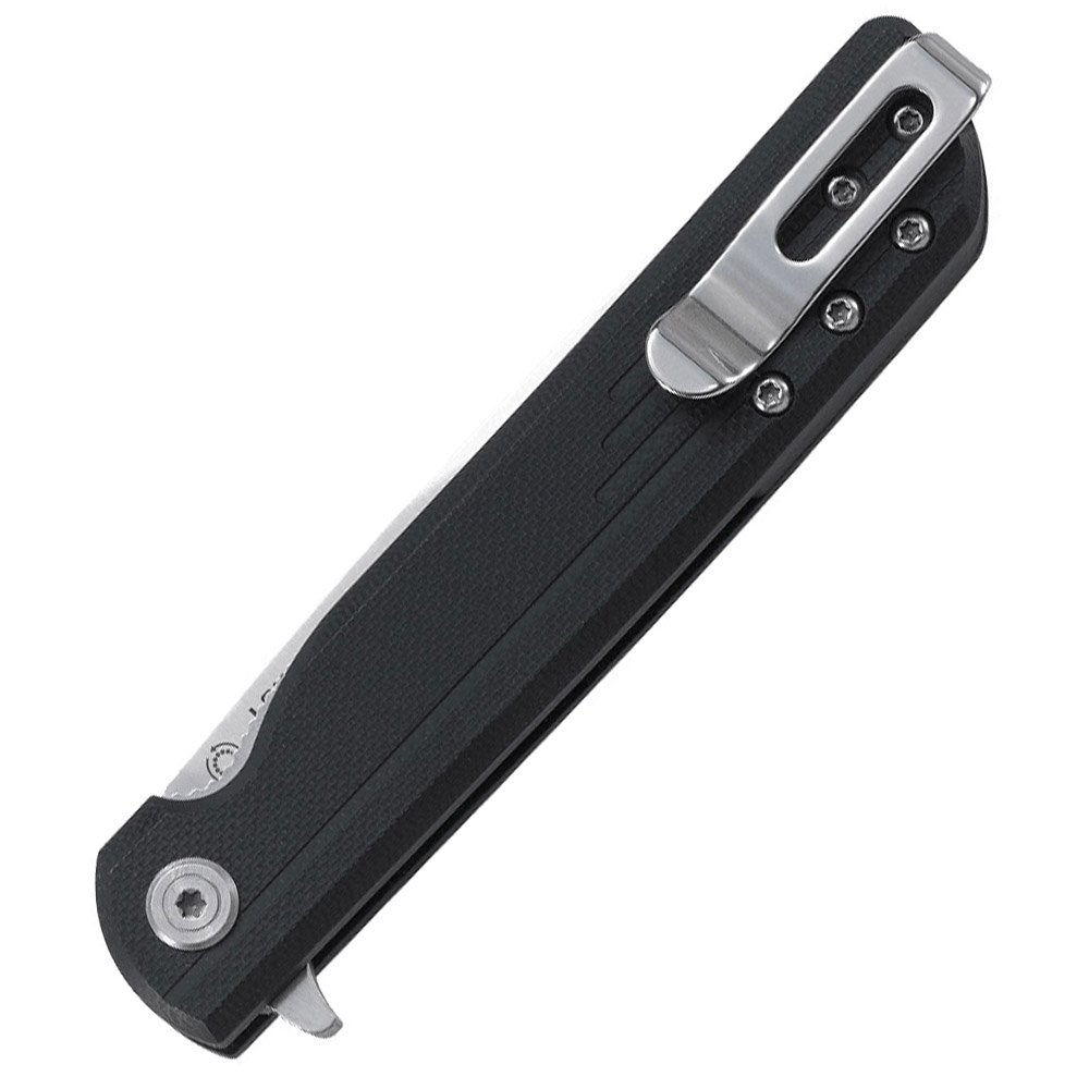 You open the CRKT LCK with the flipper. When opened the blade is locked by a liner lock. As such your fingers are safe during use. The handle of the LCK is made from FRN. A strong plastic which feels great in hand thanks to the grip pattern on the side. The blade is made from 8Cr13MoV-steel. This is a type of stainless steel that is easy to sharpen.
