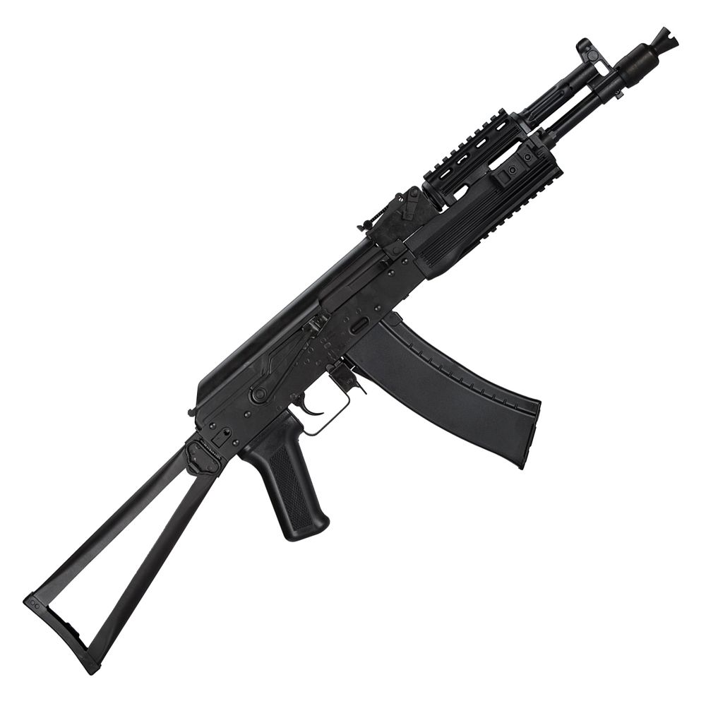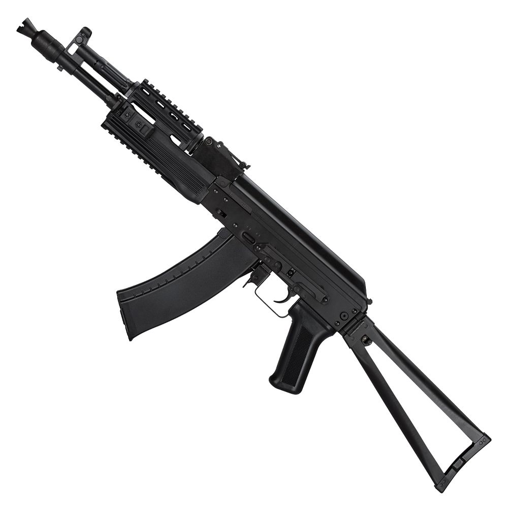 Russians love their AKs, and LCT Airsoft knows just how to manufacture realistic airsoft rifles that stay true to the AK form. Taking after the AK-74 assault rifle, the TK1045 has a full steel body with reinforced polymer furniture that gives it a nice balanced weight around 3.3 kg (7.28 lbs). It features a skeletal steel folding stock and a quad-railed handguard for tactical optimization.