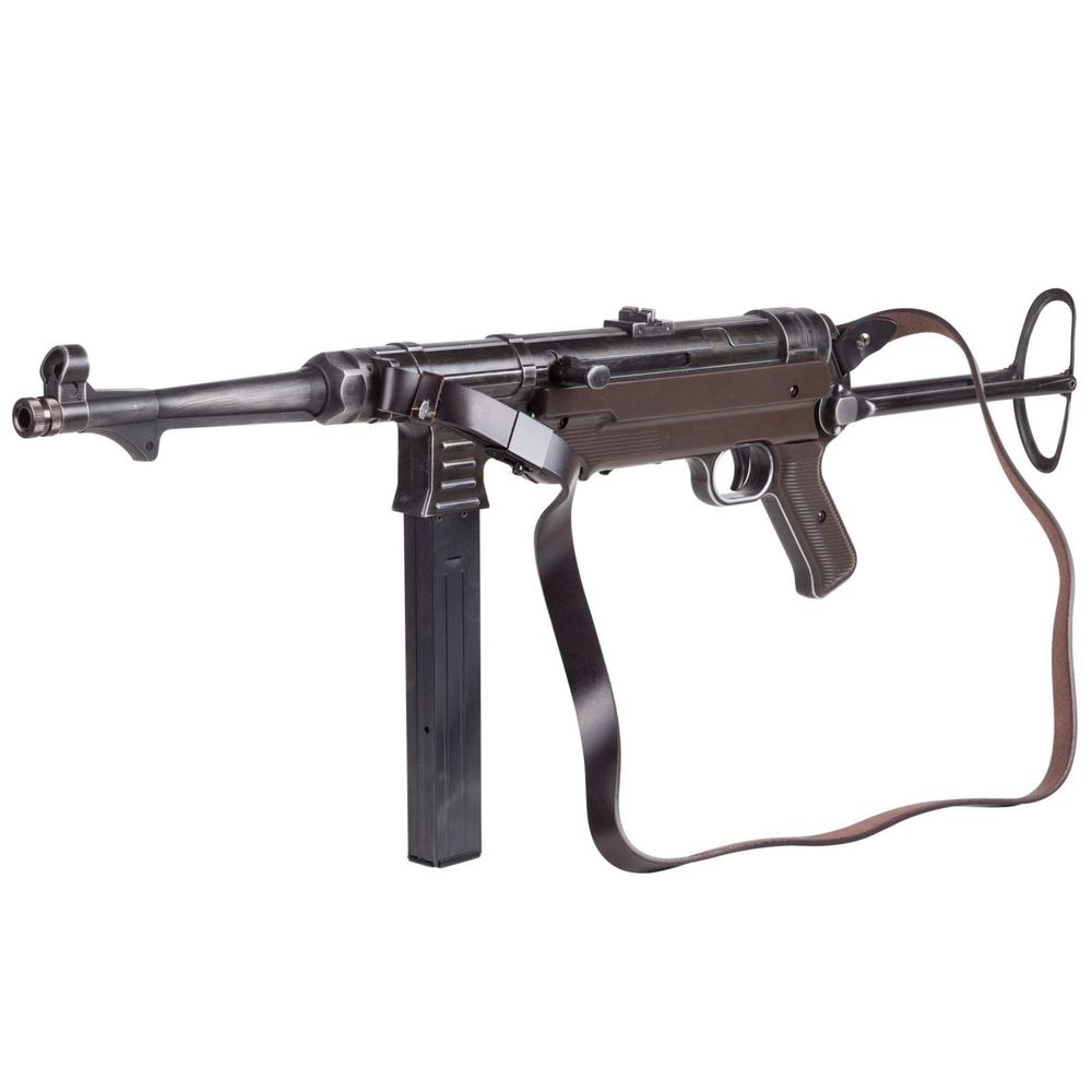 Let the full auto fun begin. The Legends MP CO2 Blowback Submachine Gun gives you the option to shoot in either semi or full-auto mode. This full metal CO2 gun is an authentic replica of the MP40, a historic firearm developed in 1940 for German paratroopers during WWII. Features include realistic blowback action, an adjustable rear sight for elevation, a folding stock, and an adjustable butt plate. Holds 60 rounds of 4.5mm steel BBs.