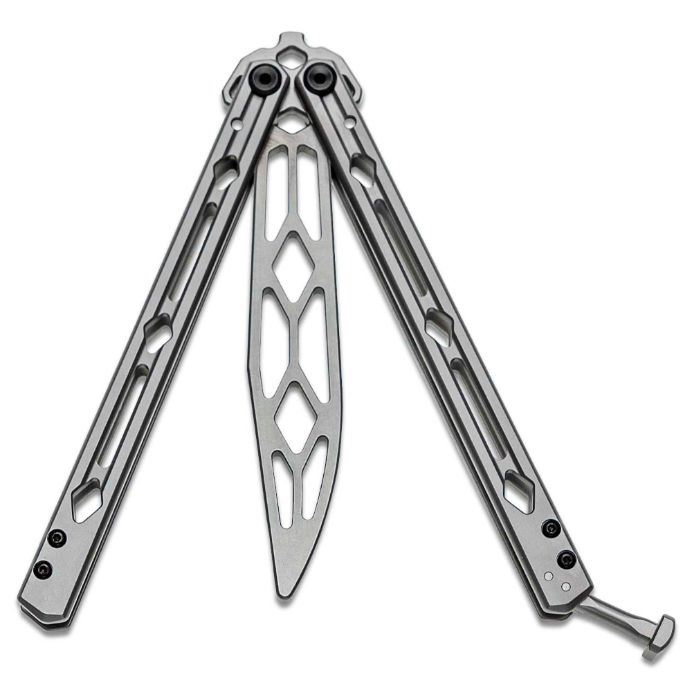 Flipping butterfly knives is fun and rewarding, but it can be a little intimidating. That’s where the Lucha – Trainer comes in. A rounded tip and blunt edge eliminate the risk of accidental cuts while performing tricks. The trainer version was designed to perform as closely to the original Lucha as possible. The Lucha - Trainer features dual KVT ball-bearing pivots for extra-easy operation. The handle has a rounded bevel so it rolls effortlessly in the hand. Even the latch is rounded so it never catches as you flip. The latch also features a positive stop so it never contacts the blade. And as an aesthetic touch, the Lucha – Trainer includes diamond-shaped holes in the blade, mirroring the rest of the design. Whether first timers feel more comfortable with a trainer, or an expert is practicing a top-tier trick, the Lucha – Trainer is the safest solution.