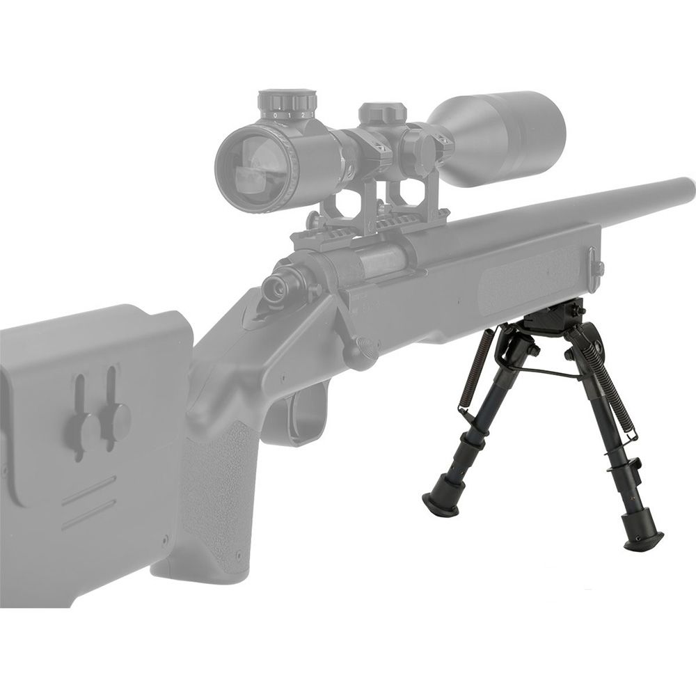 Zero in your shot by upgrading your M40A3 ProLine Airsoft Sniper Rifle with this folding bipod. The extendable legs provide the rifle with total stability, giving you better balance and accuracy when firing.