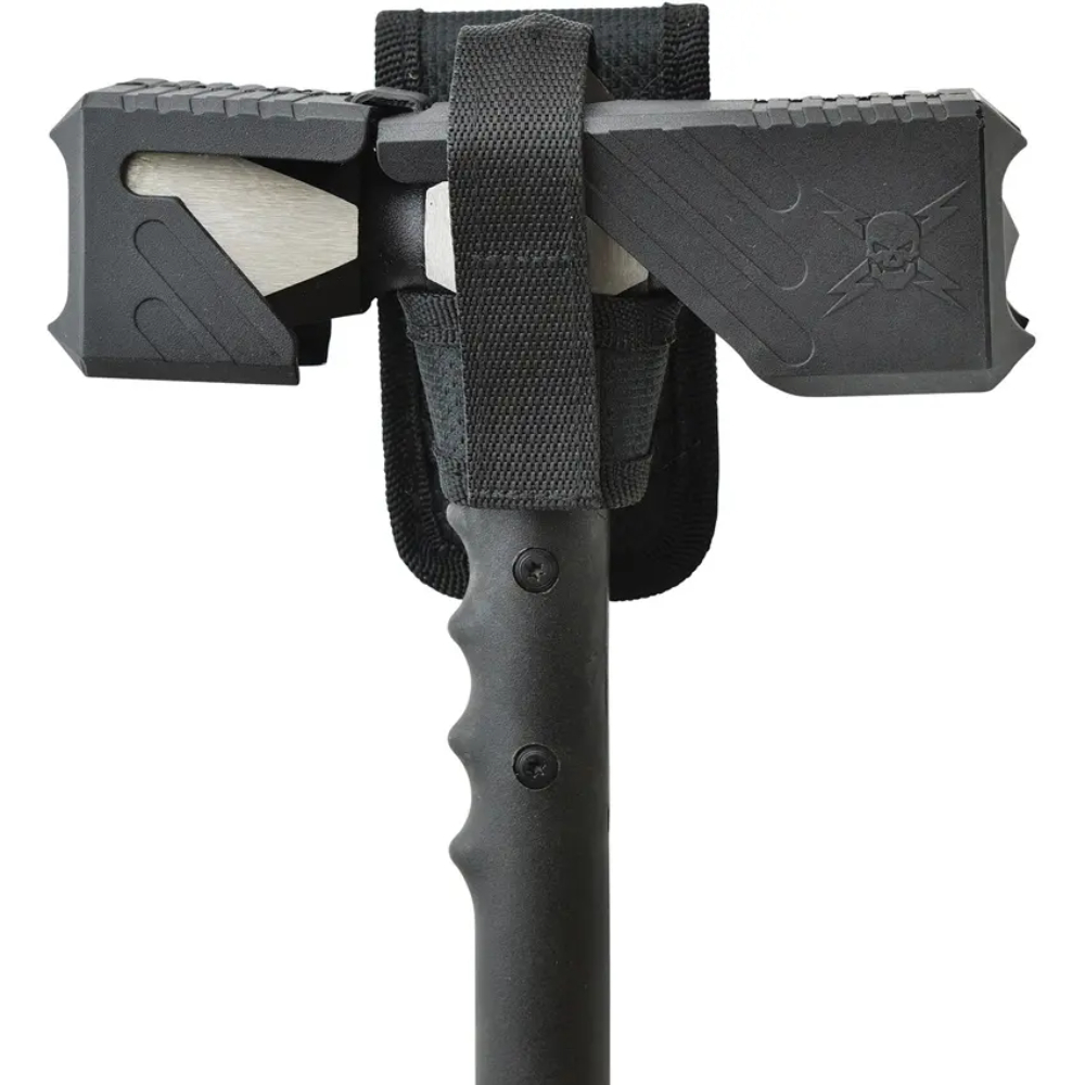You’ll be ready for anything with the M48 Double-Headed War Hammer XL to back you up, which is an impressive update of the popular M48 Double-Headed Hammer. It has a vicious 6 1/2”, 2Cr13 stainless steel double-head with a black oxide coating and a satin finish on each of its faces. The hammer head features a skull crusher at its top and five penetrating points on each of its square-shaped heads. The black handle is constructed of an almost indestructible injection molded nylon with a reinforced fiberglass fill. Special grooves are designed into the handle specifically so that paracord can be wrapped around it with relative ease. The 38 1/2” overall, double-headed war hammer has a tough TPR cover to protect the head and removable nylon belt loop.