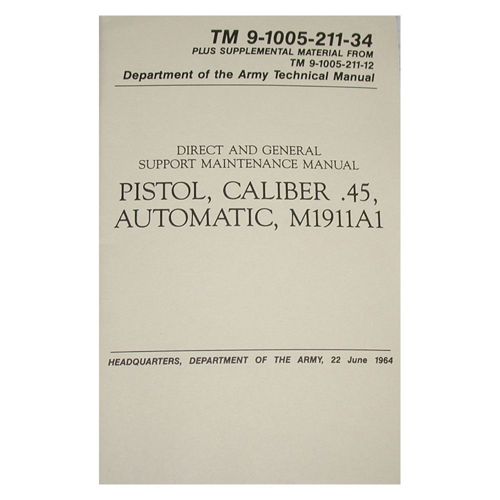 Excellent reference manual on parts, operation, and maintenance of the M1911A1 pistol. Training and Field Manual TM 9-1005-211-34: PISTOL, CALIBER .45, AUTOMATIC, M1911A1. Dated June 1964 (reprint).