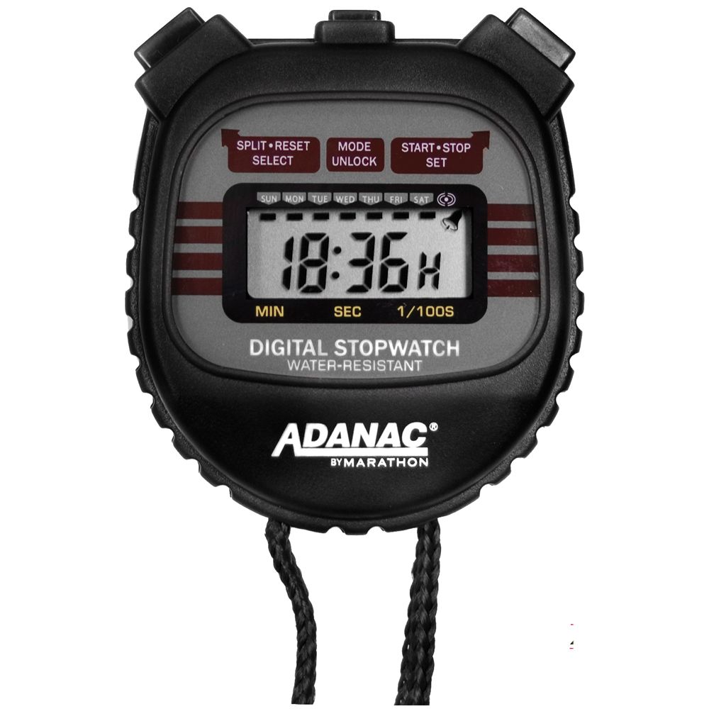 The Marathon Digital Stopwatch comes with displays for not just minutes and seconds but also 1/100 of a second. This makes it great for judging timed events to the fraction of a second. Again, the stopwatch can be used for single as well as split events making it ideal for a series of sports activities. The split mode timing feature allows you to freeze the split time display while the overall timing continues to tick. Again, the stopwatch is great to have because it also features date, day and month apart from hours, minutes and seconds. It comes with a manufacturer's warranty of one year.