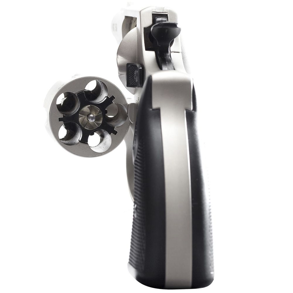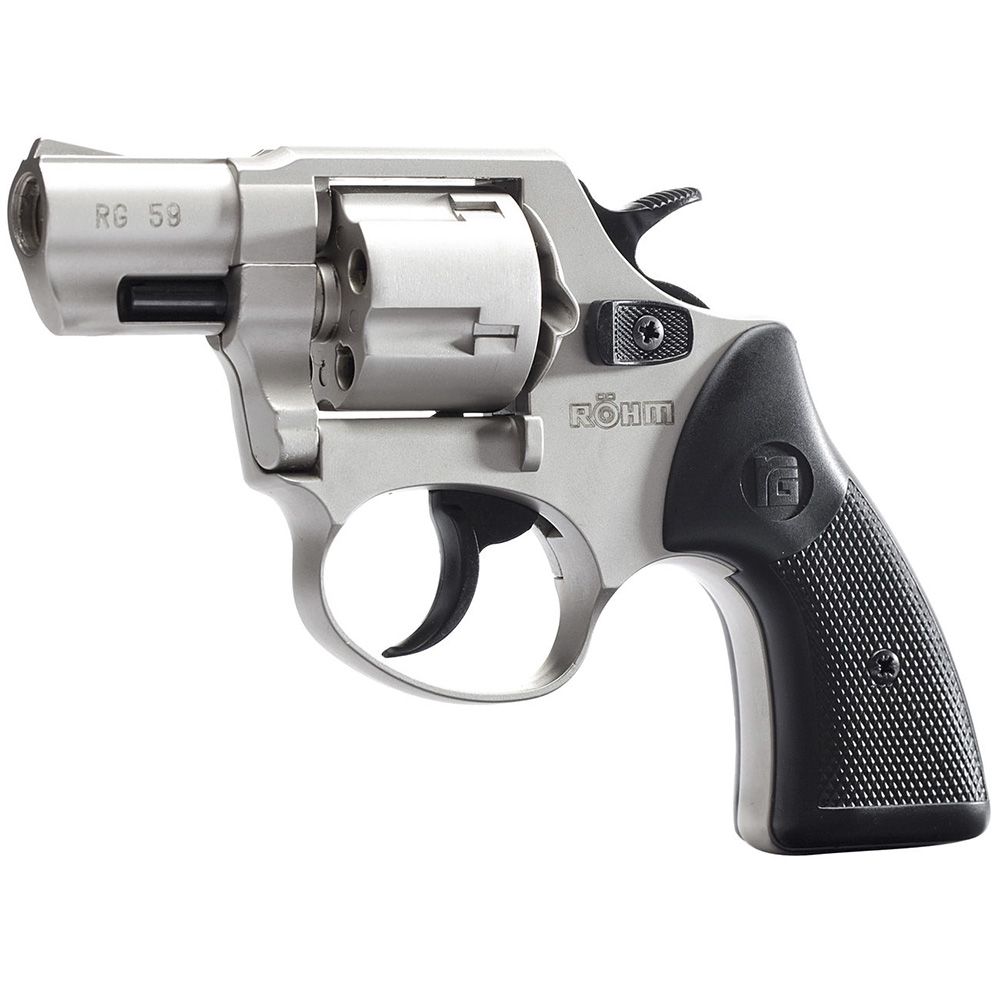 Experience the quality of German production with the ROHM RG-59 Blank Revolver. The gun houses a swing-out cylinder that fits 5 rounds of 9mm (.380 cal) crimped blanks. It can fire blank rounds on its own, or be combined with the muzzle adapter to launch 15mm flares and scare cartridges.