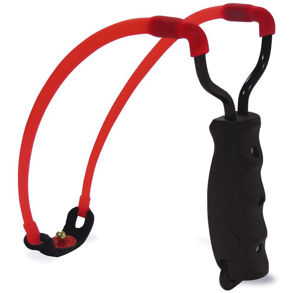 Marksman Laserhawk Slingshot by is unparalleled and wonderfully designed. Anyone who uses this sturdy slingshot would have their day made. With its talon grip the slingshot would not slip from the hand when extra force is used and the aim can never go wrong. The band is of a tapered form, so when used it gives the shot a 30% higher velocity than usual. The band also has an additional talon grip magnetic pouch. This wonderful slingshot has the ability to hold a steel shot of any size and possesses a tempered steel yoke. The Marksman Laserhawk Slingshot is very safe and extremely fun to use.