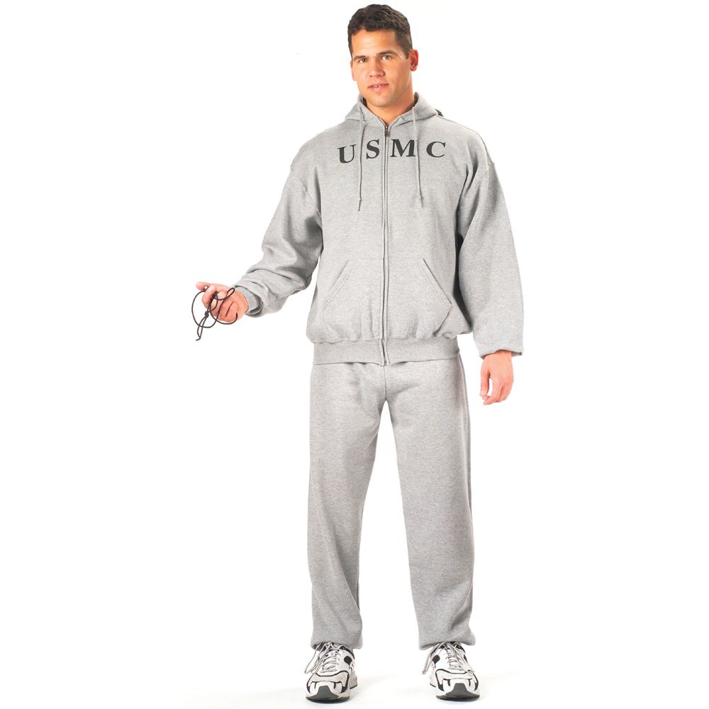 Mens Grey USMC Zipper Hooded Sweatshirt