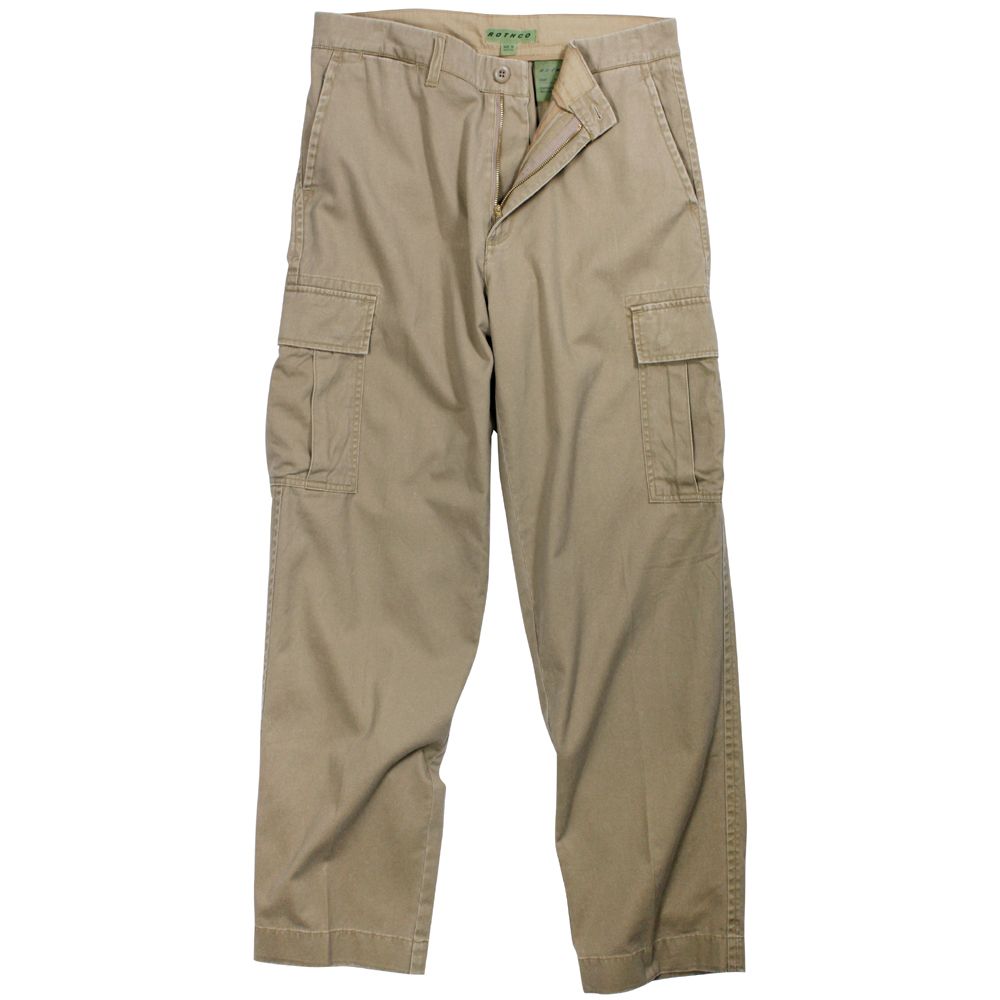 The Vintage Flat Front Cargo Fatigue Pants from Ultra Force are testament to the wide range of clothing at Ultra Force. These pants feature six highly useful pockets two of which are slant pockets in the front. The pants also feature two cargo pockets on the sides and two concealed pockets on the rear. These trendy and rugged cargo fatigue pants are made from 100% cotton twill and bear the washed finish lending them the air of toughness. The pants have a brass zipper fly and button closure for convenience. These cotton twill pants have a relaxed fit and are available in a wide variety of sizes.