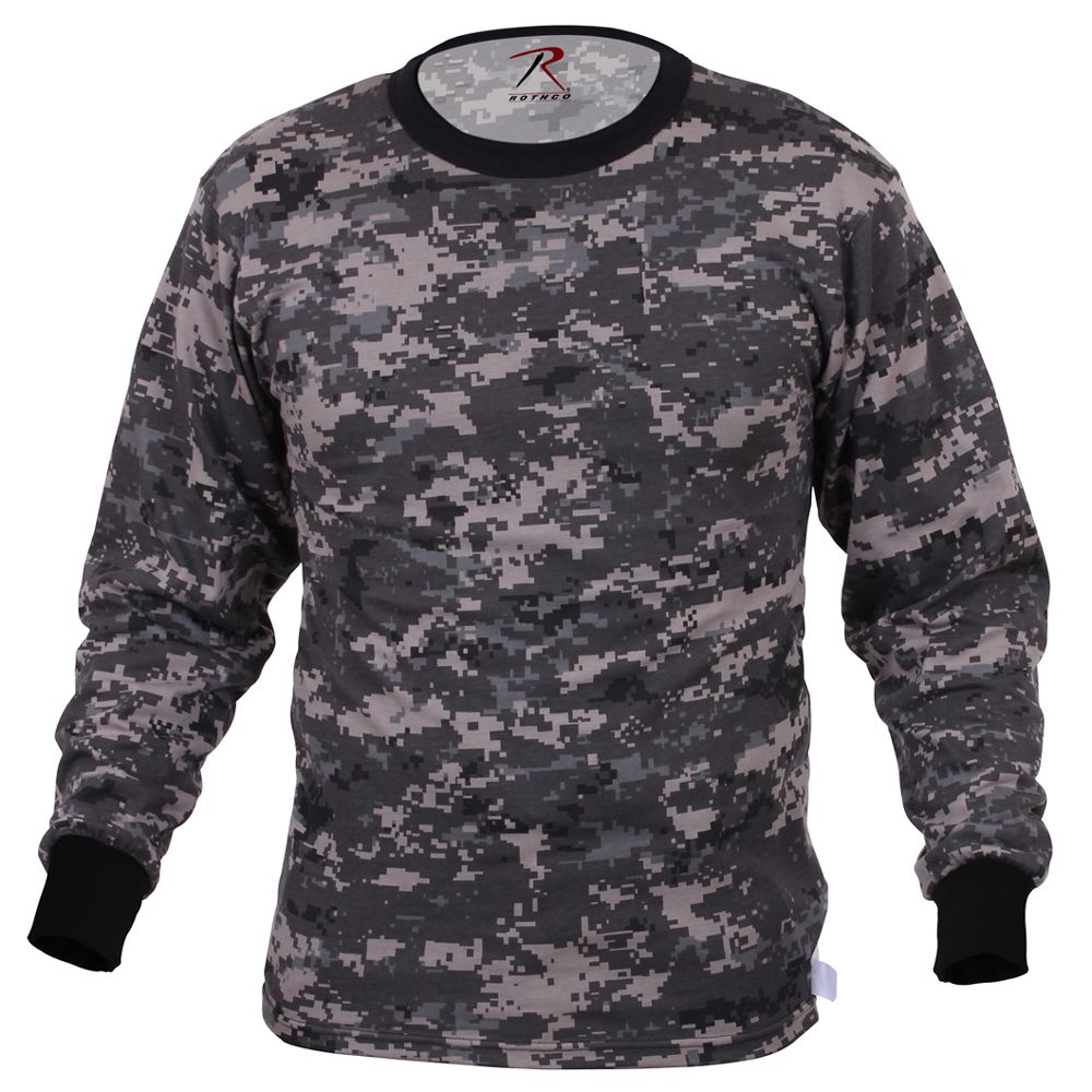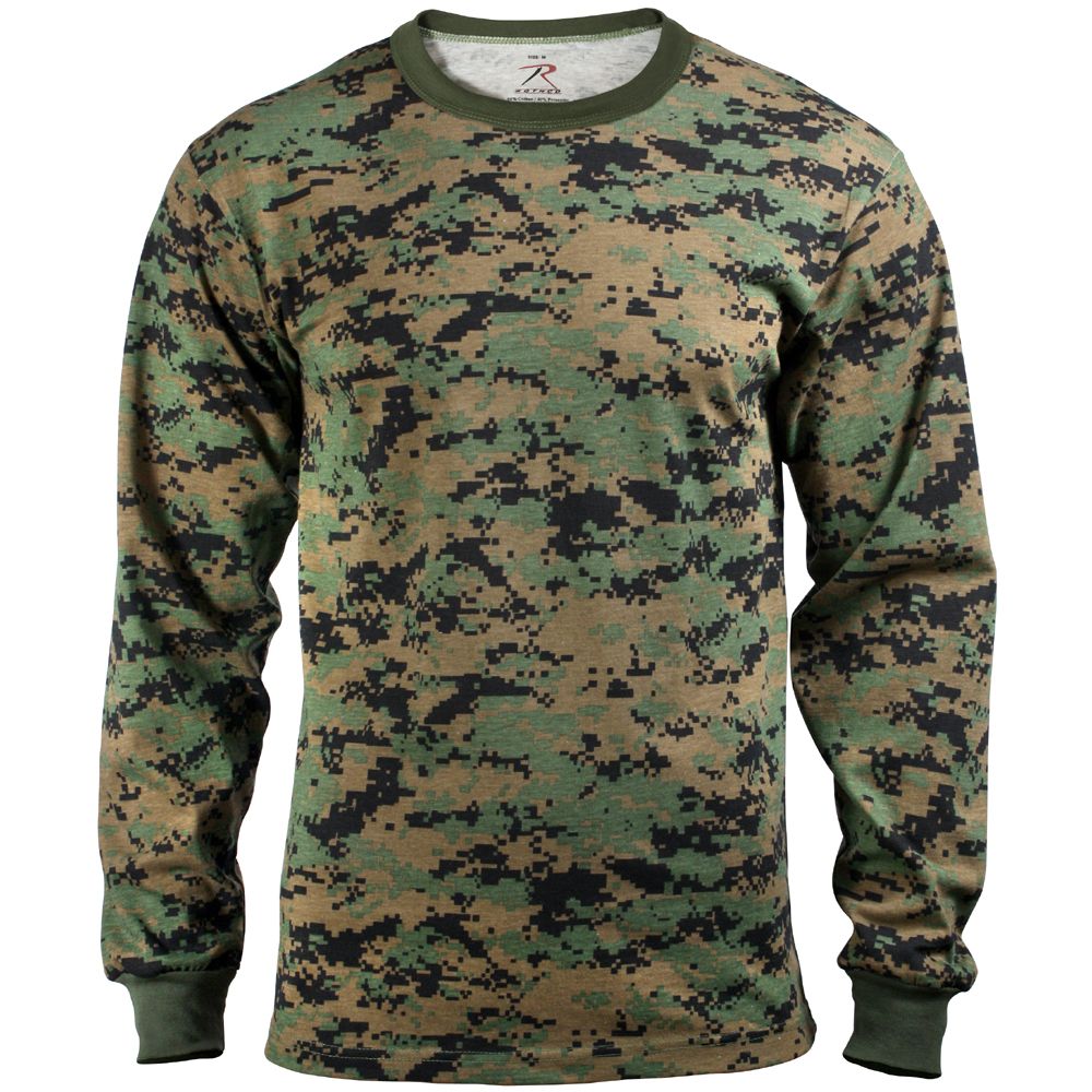 Long Sleeve Digital Camo T-Shirts feature a Cotton / Polyester blend and are available in various sizes