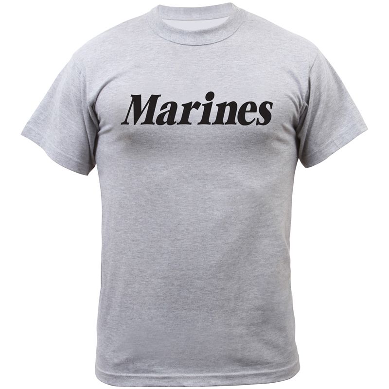Grey Physical Training T-Shirt is constructed with a heavyweight poly/cotton material, with a Army, Marines, Navy or Air Force print. Great for training, workouts or as an everyday shirt. Also, be sure to checkout our matching PT shorts.