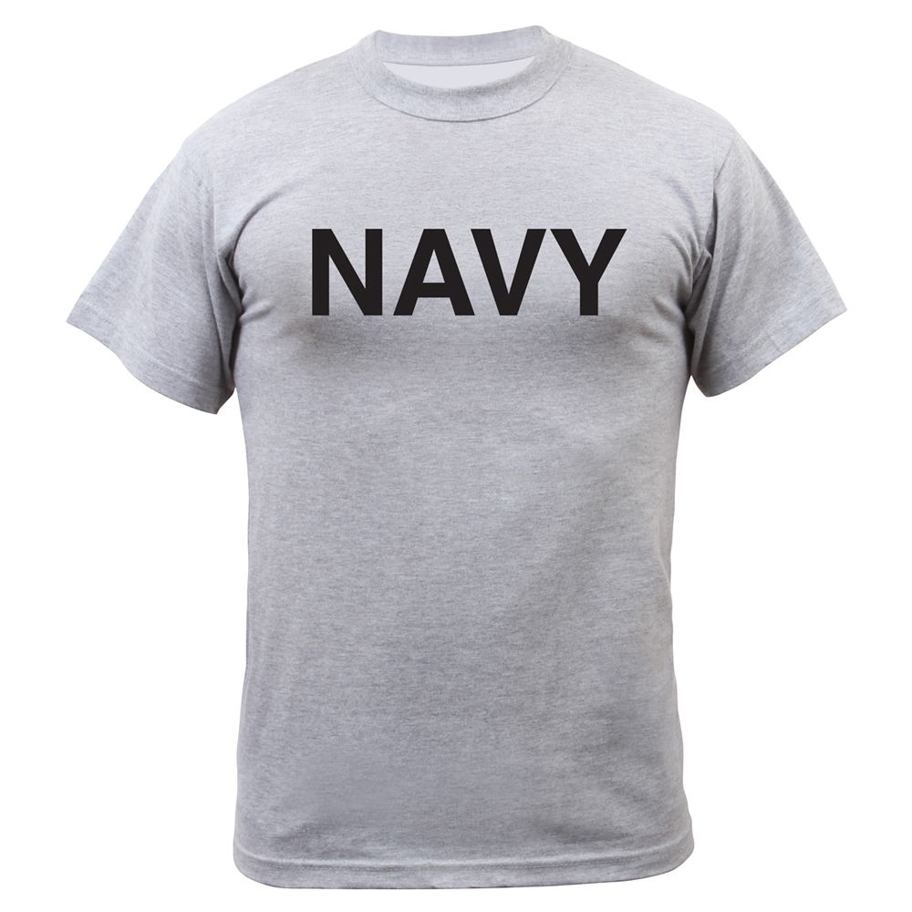 Grey Physical Training T-Shirt is constructed with a heavyweight poly/cotton material, with a Army, Marines, Navy or Air Force print. Great for training, workouts or as an everyday shirt. Also, be sure to checkout our matching PT shorts.