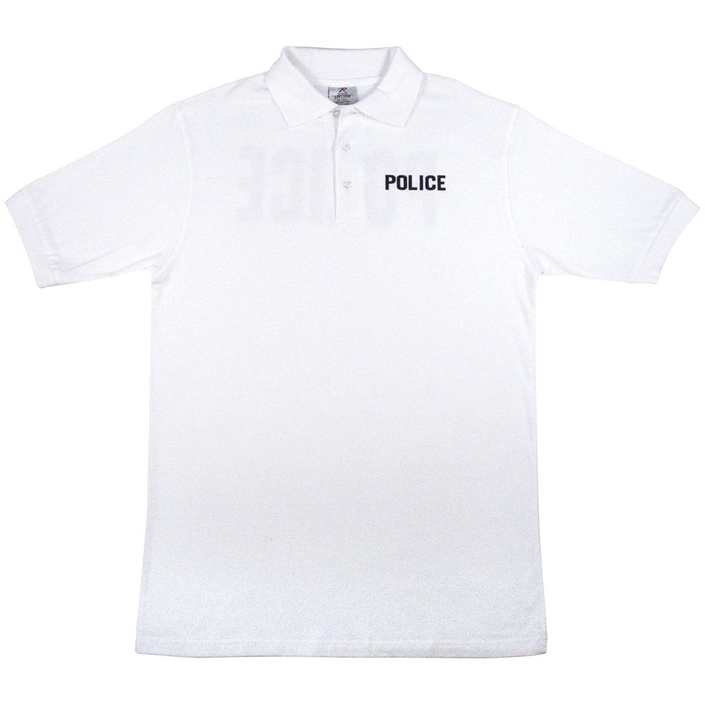 White police printed golf shirt is made of 100% cotton material. It is a three button collared shirt with two sided print and full size cut. This shirt is very comfortable to wear as it is made of pure cotton material. There are various sizes in which these shirts are available and so selecting the size that fits well would not be a problem. It is a collared shirt which makes it look smart. The full size cut makes it even more comfortable. It is basically a white shirt on which “POLICE” is imprinted with black color.