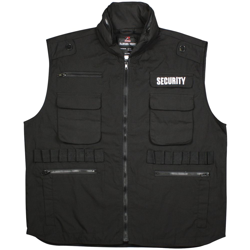 The Black ''Security'' Ranger Vest for men is made up of Polyester and cotton fabric. It has eight front pockets which makes it practically more useful. The vest has a designer pattern and has a ‘security’ tag embroidered on the chest pocket flap and also on the back pocket flap. It has distinct loop and hook closure, one torso zipper closure, two slash pockets on both faces, and two lower fronts with closing zip. It also has eight armor loops on both sides of the front portion. The neckline is designed with zippered collar and concealed hoods. It is an excellent quality, utility vest for any security personnel.