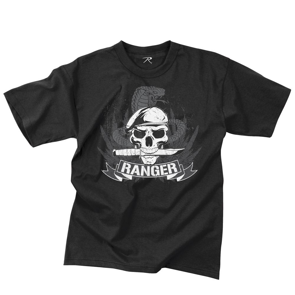 Flaunt the adventurous spirit inside you with your favorite Vintage Black Ranger T-shirt. This black round neck short sleeved vintage T-shirt brings to the fore an adventure lover that is hidden in you. The cotton and polyester blend garment fabric in made from best quality threads and have a washed vintage look. A traditional ranger skull wearing beret and a knife in mouth is printed on the front in white color. Below the skull the word “RANGER” is printed in the same tone over a grey grass and snake design. The tag less neck label of this T-shirt adds to the comfort of the wearer.