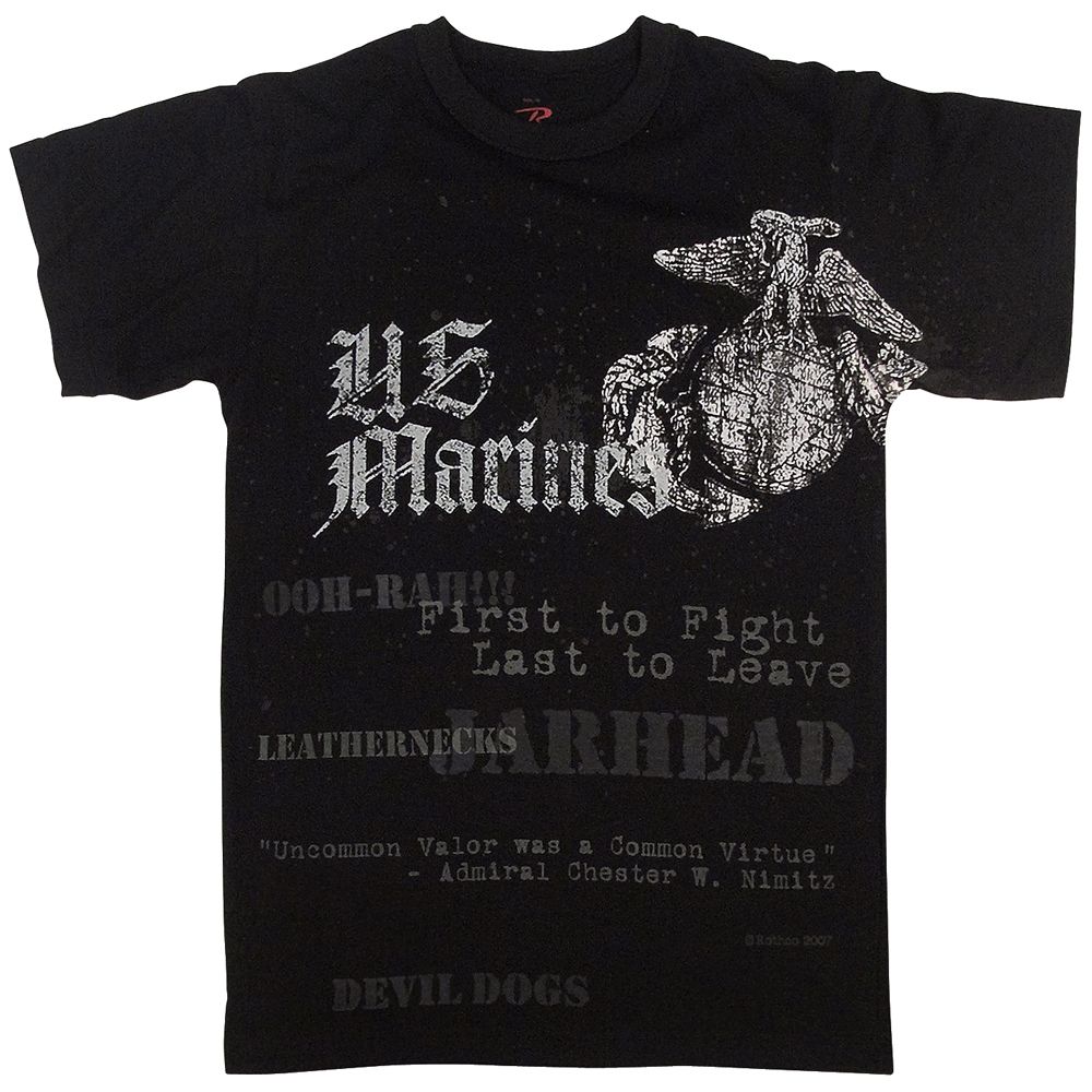 Vintage US Globe and Anchor T-shirt are made with a unique blend of cotton and polyester material. The usage of this material makes these T-shirts durable and easy to clean. It is manufactured from the renowned house of Ultra Force. The sizes range from small to 3Xlarge. It is available with an imprint labeling which means tag-less comfort for your skin, which means no irritation of hanging tag and extra comfort. The front design contains an anchor logo and the words "US Marines" along with the text:-ooh-rah!!!; first to fight, last to leave; leathernecks; jarhead; "uncommon valor was a common virtue" - Admiral Chester W. Nimitz; devil dogs.