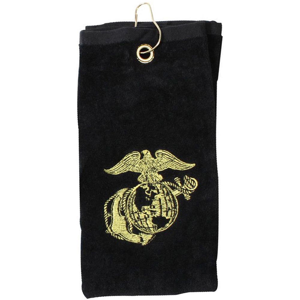Marine globe military embroidered golf towel is made with 100% cotton. The towel is available in two designs. The black color with gold embossment makes it trendy and attractive. The size of the towel is perfect measuring 15.75” X 22.5”. The black towel is made with velour finish. The two designs available are: black towel with ARMY printed in gold color and black towel with anchor and marine globe printed in gold color. The towels are of perfect size so it can be used by people of all age group. Marine Globe Military Embroidered Golf Towel from Ultra Force is one of the most useful products.
