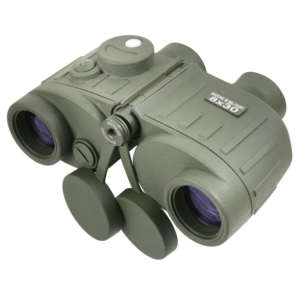 Military Style Tactical Binoculars are made with durable rubber, plastic, glass, nylon, aluminum material. These floatable binoculars are water and fog proof and have an illumination reading. This military binocular features an 8 x 30 optical zoom, range finding reticle & dial, and multi-coated lens with built-in compass. Tactical binoculars also come with 2 batteries, a shoulder strap, and a cleaning cloth. These combat binoculars are perfect for any military personnel and/or outdoor enthusiast.