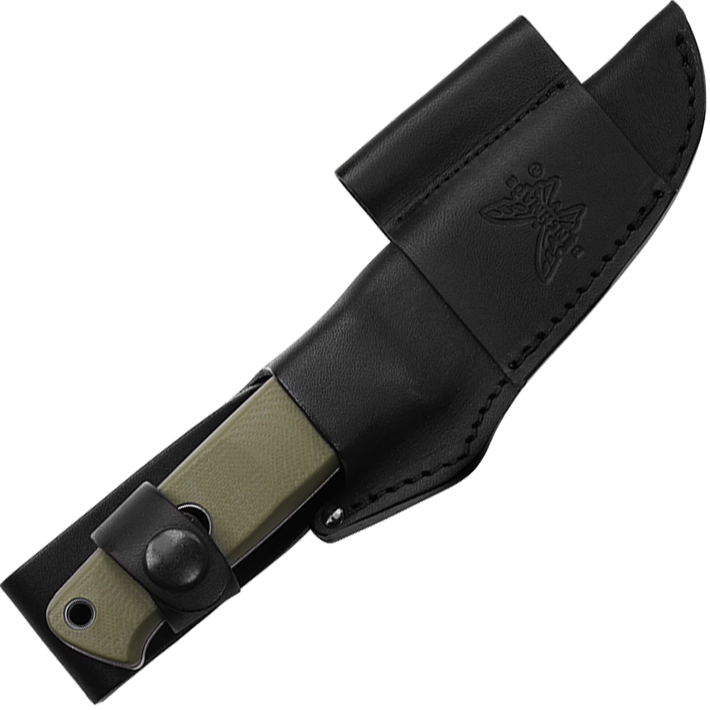 The Benchmade Mini Bushcrafter fixed blade comes in a refined Carbon Fiber edition, catering to both on-trail adventures and off-grid escapades. Crafted with a robust Cerakote CruWear Blade in sleek black, it boasts remarkable durability and edge longevity, fulfilling the exacting needs of bushcraft enthusiasts. Its drop-point blade configuration effortlessly handles camp chores and all manners of wilderness craft. With carbon fiber handles, the Bushcrafter maintains its featherlight profile, ensuring hassle-free portability for your outdoor pursuits. Venture forth and explore with confidence!