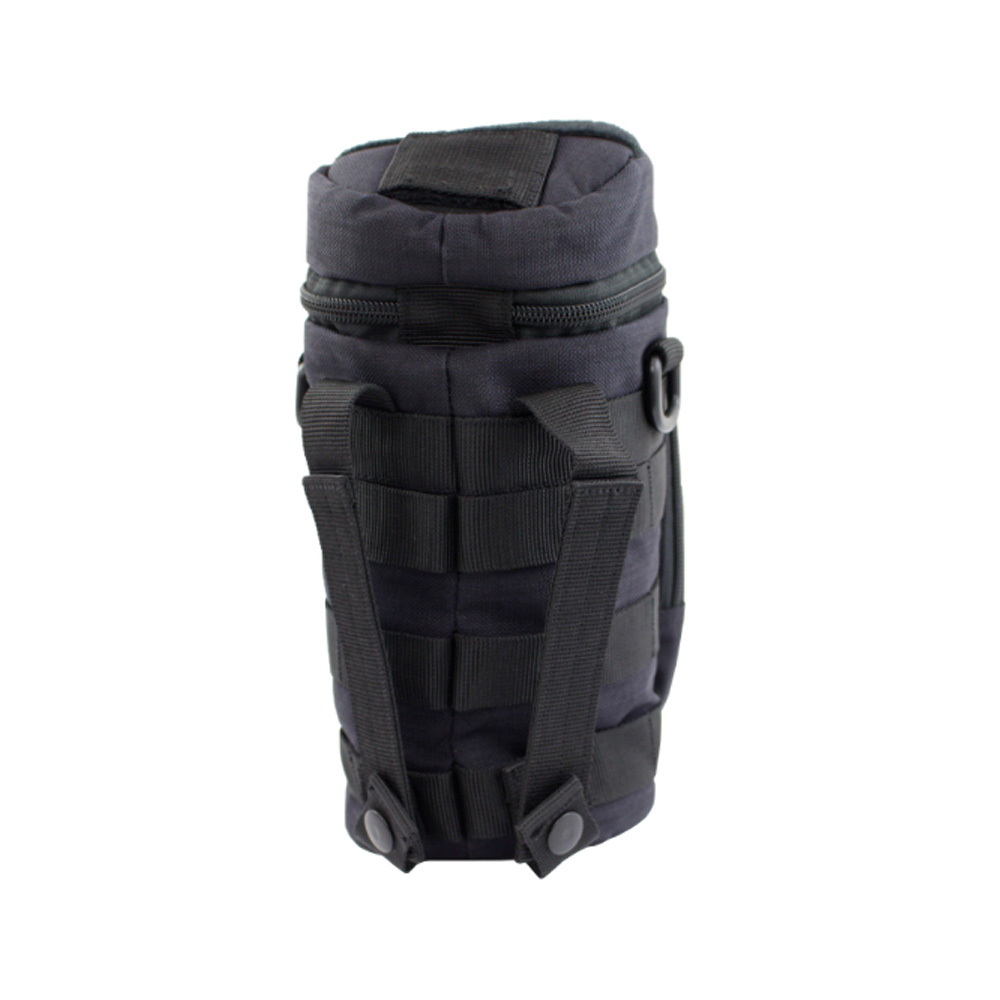 Molle Compatible Water Bottle Pouch is an ideal hydration accessory for the military and tactical market. The pouch will fit most water bottles (the main water bottle pouch is 10.5" Tall 4") and securely fastens to any MOLLE attachment system. The pouch has a front zippered pouch with MOLLE loops on the front, a zipper closure flip top, MOLLE loops around the entire pouch, and two 6" MOLLE straps on the back. The water pouch also has D-rings on each side a straw hole on the top and a drain hole